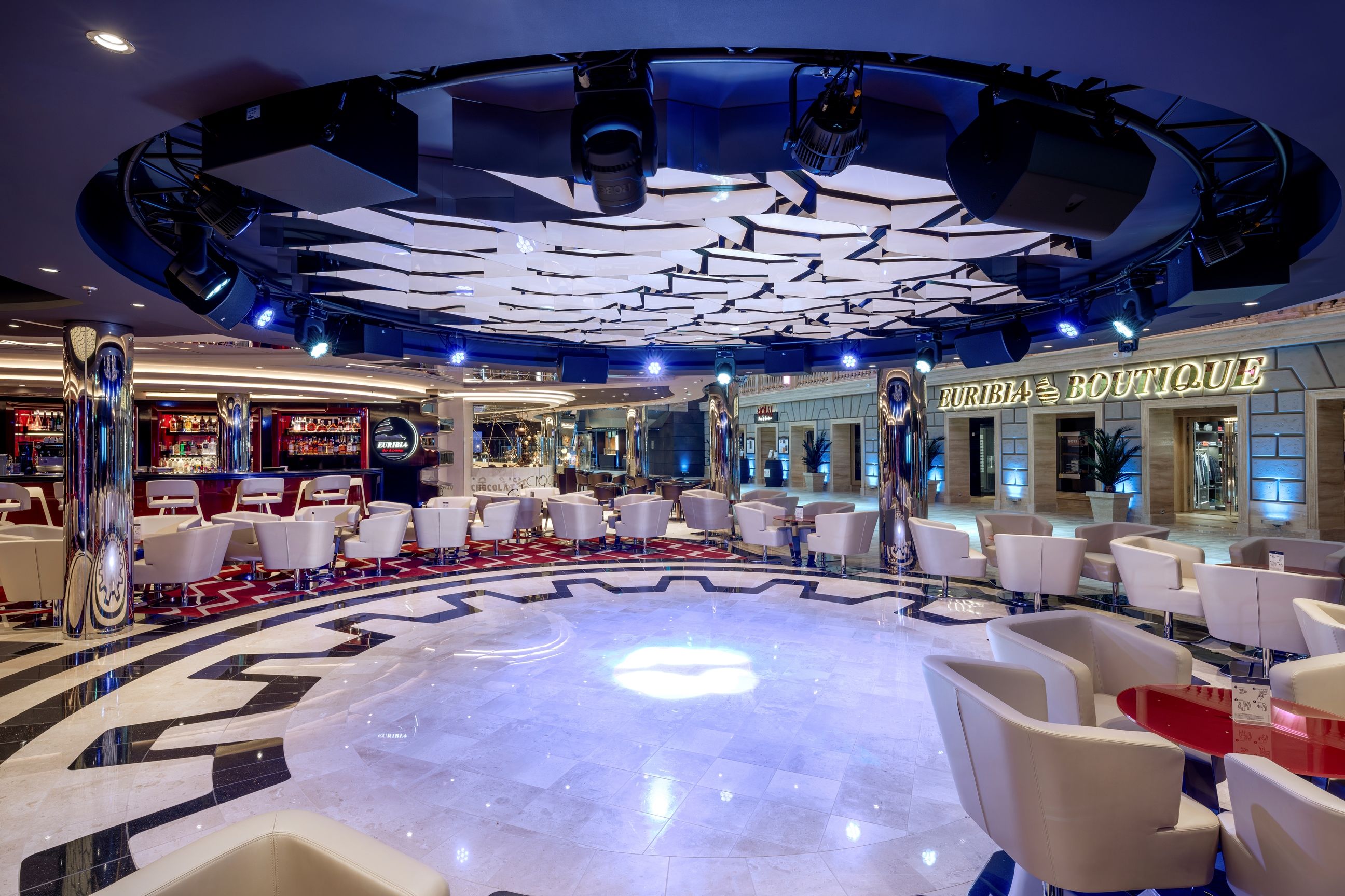 Нощният клуб с диско ритми е на ваше разположение до малките часове, както и различните коктейл барове, шампанско бар, винарна, английски пъб, пиано бар, ТВ студио бар, 4 бара на откритите палуби.