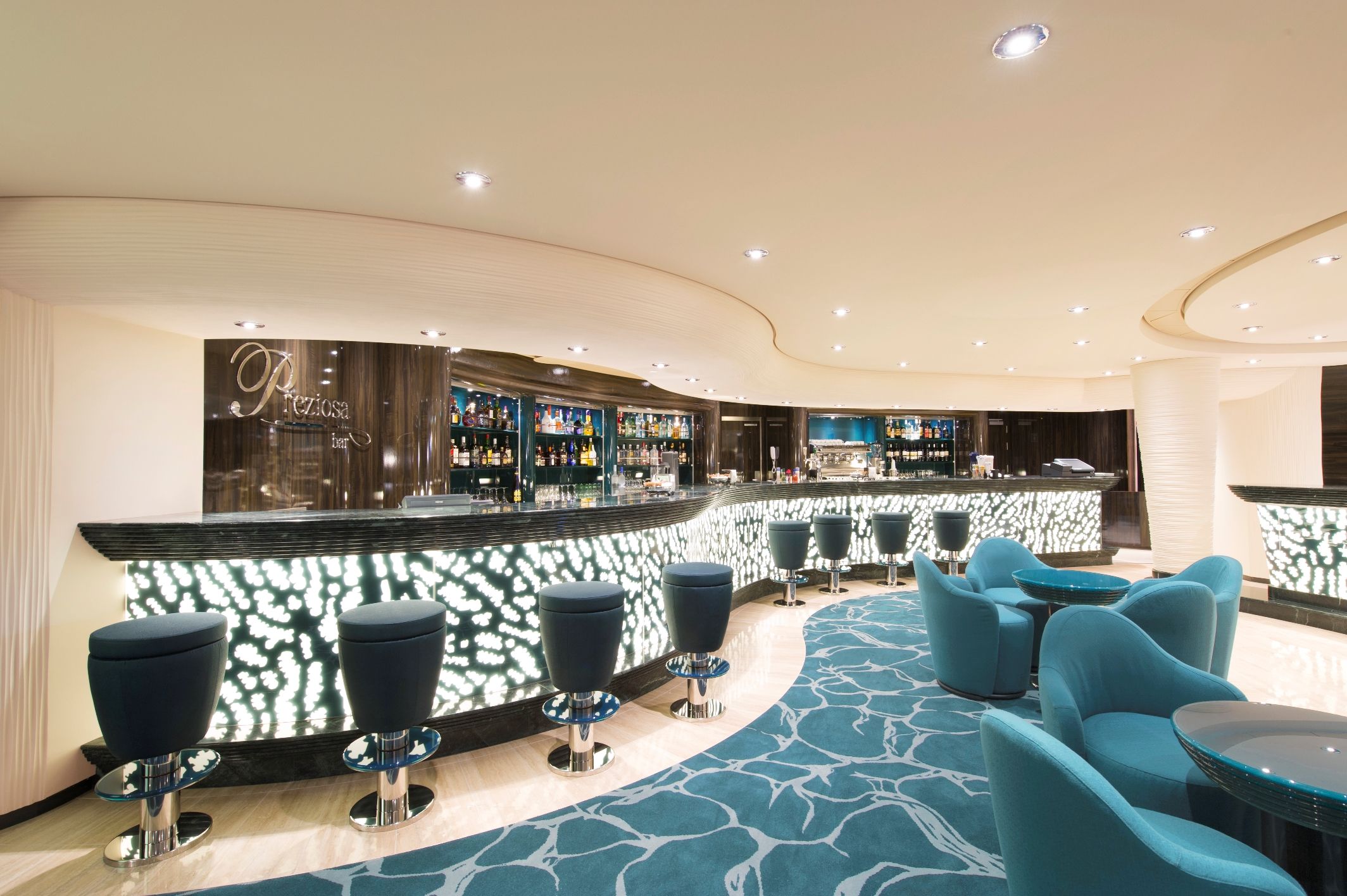 Със своите 330 метра дължина, 18 палуби, 1750 кабини и 27000 м2 публични пространства, Preziosa е чудесен избор за всяко пътешествие по море.