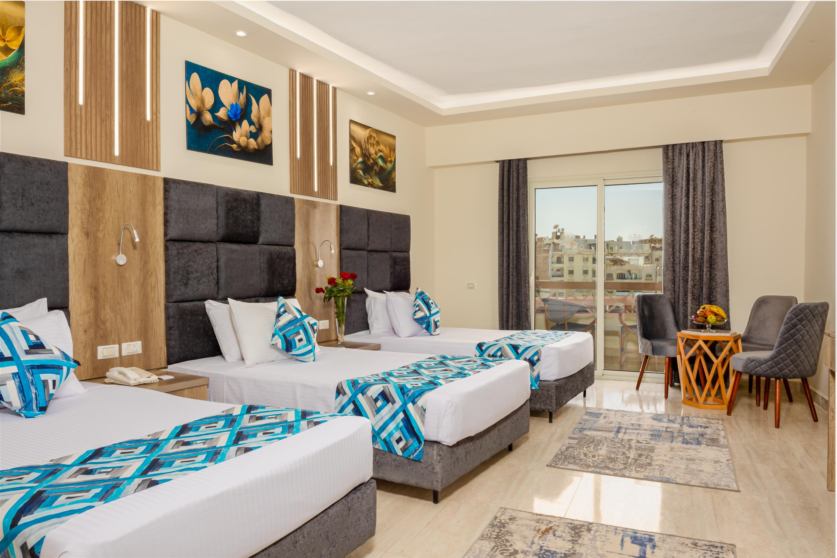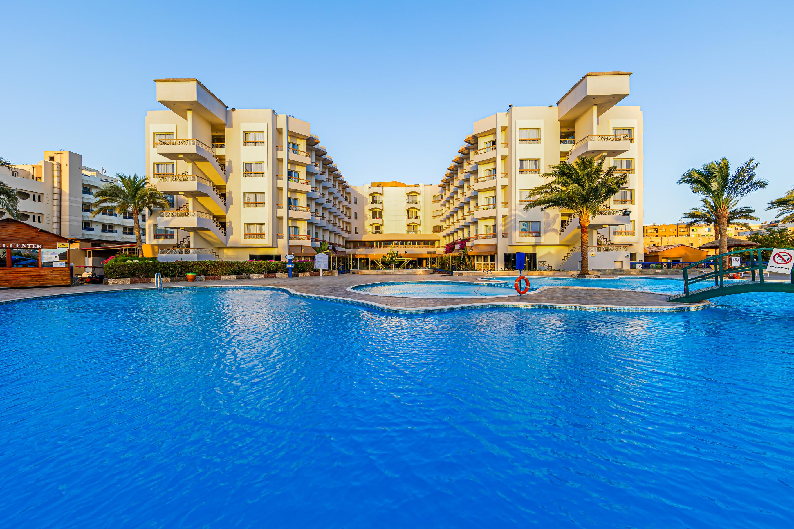 Намира се на 10 км от летище Хургада, в центъра на Хургада, на брега на морето. Построен 2001г. Реновиран 2025 г.
