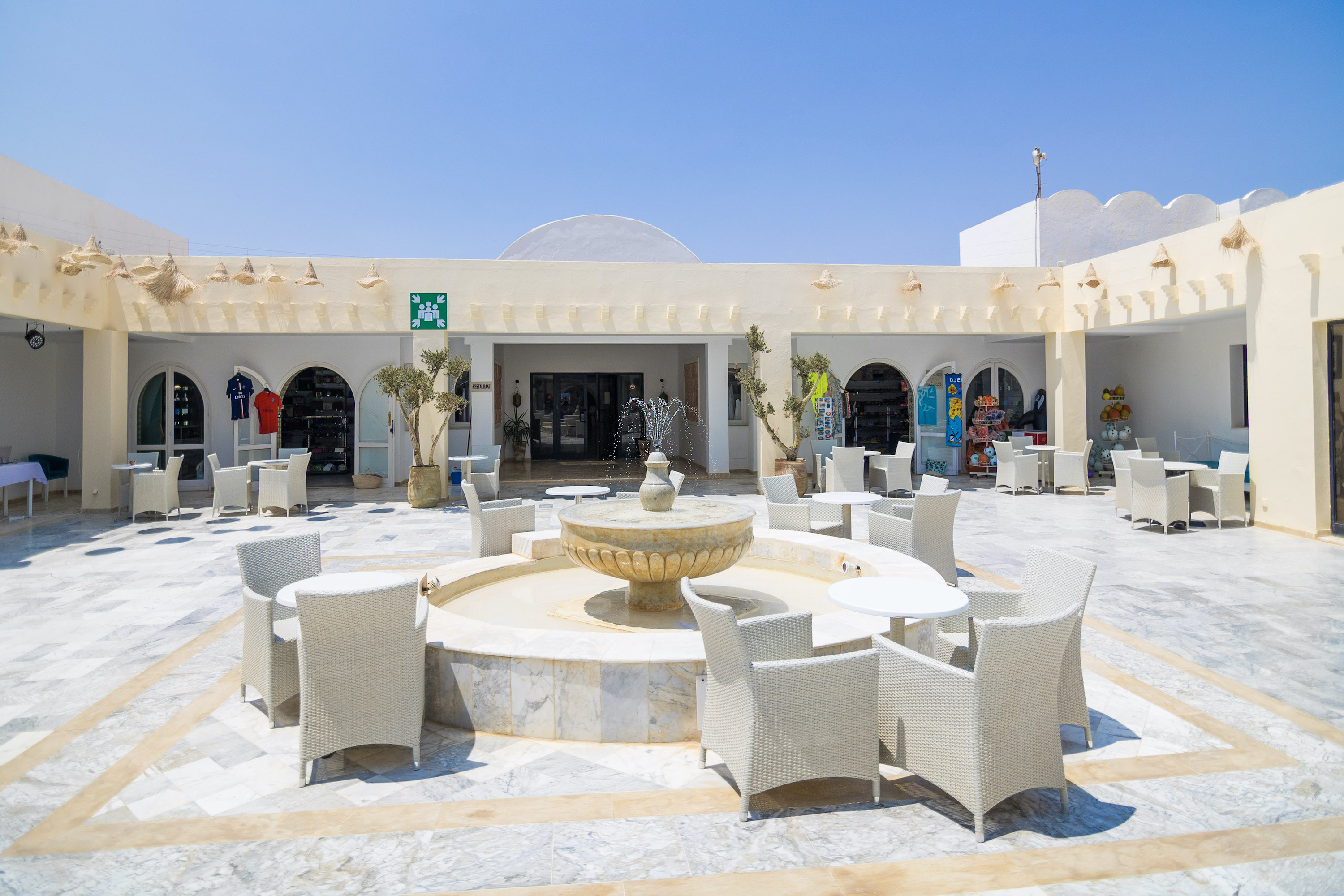 На територията на хотела има основен ресторант, лоби бар, бар до басейна, бар на плажа (безалкохолни напитки и бира), мавританско кафене (доплащане за наргиле), Chill-out бар (доплащане за наргиле), открит басейн, закрит басейн, Спа център (с доплащане), сувенирен магазин,