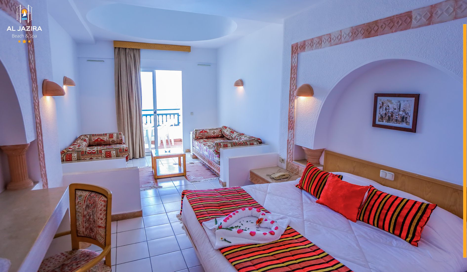 Основен ресторант, 4 бара, мавританско кафене (наргиле-срещу заплащане), 2 открити и 1 закрит басейн - отворен само в периода април и октомври, СПА център, сувенирен магазин, обменно бюро, паркинг.