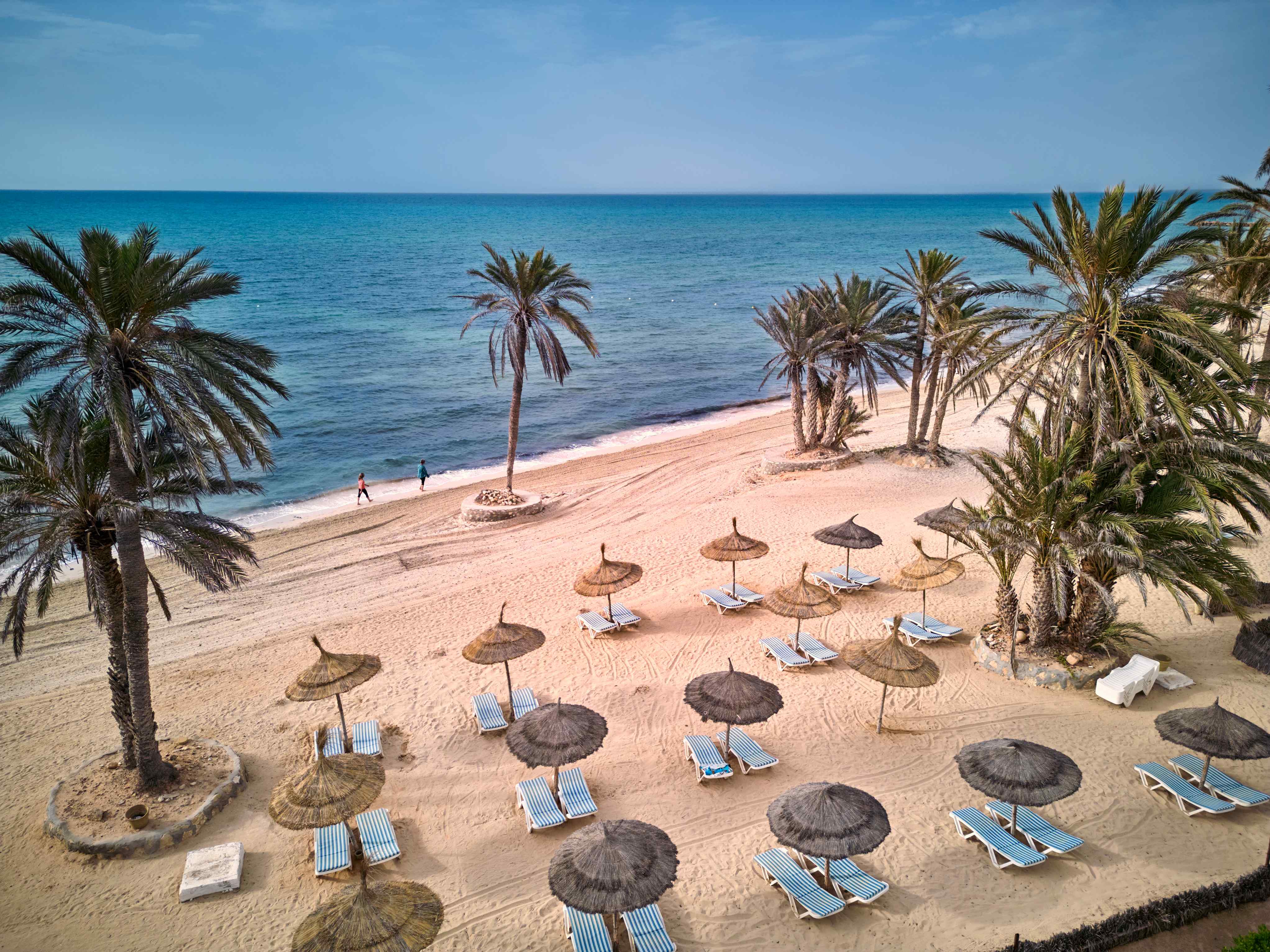 Въпреки малките си размери, тунизийската перла о-в Джерба изобилства от красиви плажове, прекрасни малки градчета, зашеметяващо културно богатство и незабравима кухня. Той смесва всички обичайни декорации на Средиземноморието с характерните си северноафрикански корени. Тук векове наред мирно съжителстват мюсюлмани, бербери и евреи. Островът е дом и на най-старата синагога в Африка. Първата спирка ще бъде Гелала, известен в цялата страна със своите майстори грънчари и керамични изделия. Тук е разположен и етнографски музей, показващ огромните традиции на острова. Неразделна част от екскурзията е синаготата Ел Гриба – най-старата в Африка и една от най-старите в света, основана през 6 век пр.н.е. Освен че е център на еврейския живот на острова, е и място за поклонение. Една от легендите, свързани с основаването й, твърди, че е включен или камък, или врата от Соломоновия храм или Втория храм в сградата. В знак на приятелство между религиите е построена джамия в близост до синагогата. Последната точка по маршрута ще бъде град Хумт Сук – столица и най-голям град на острова. Той е туристически център популярен с традиционния си базар (сук), крепостта Борж Ел Кебир, пристанището, Католическата църква „Свети Йосиф“ и невероятната си архитектура. В града е предвидено и свободно време за разходка и шопинг.