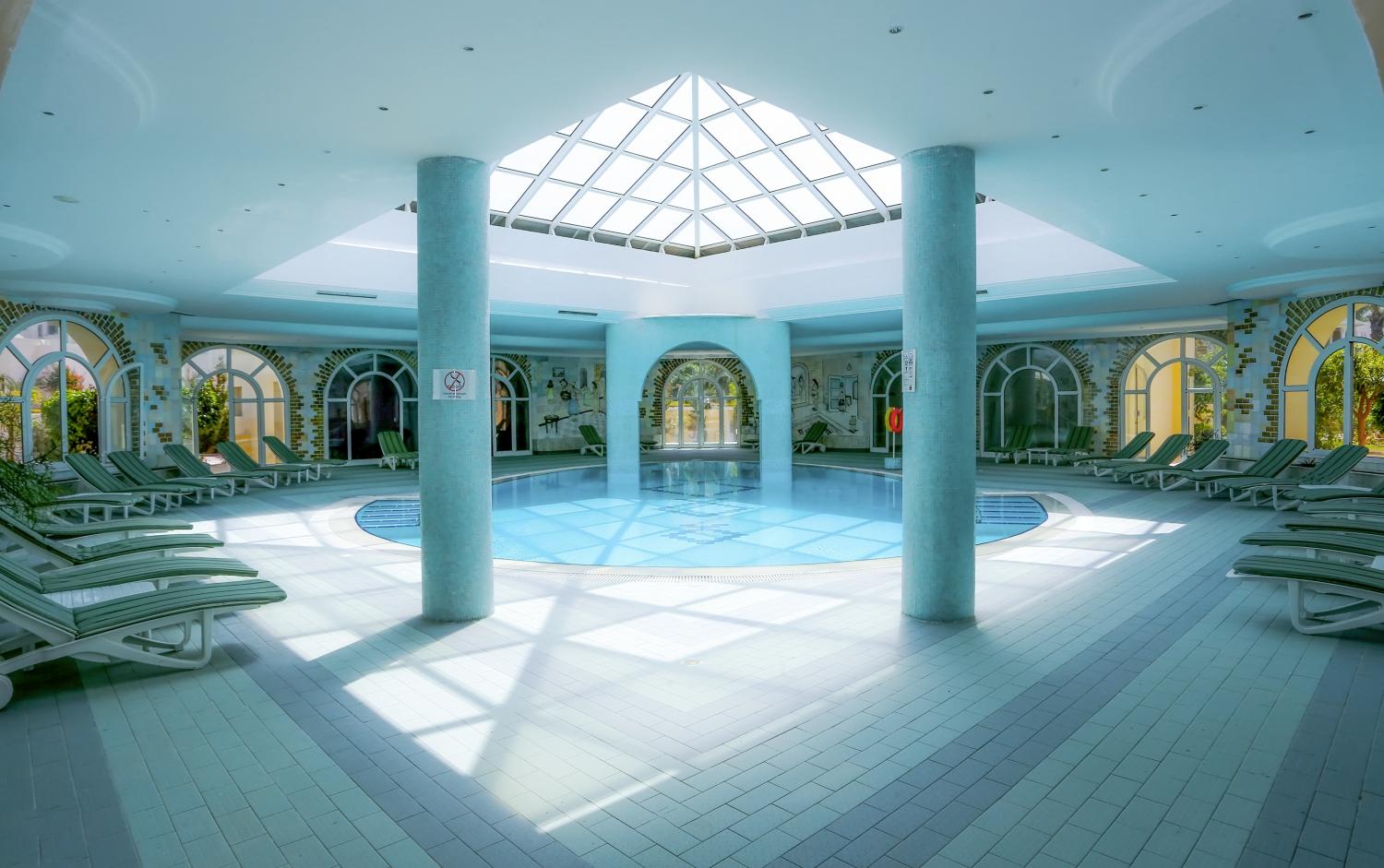 Основен ресторант Zeus, лоби бар Horus, бар на плажа, барбекю ресторант Sindbad (късна закуска, обяд, дневни закуски), мавританско кафене Isis Cafe Maure (наргиле-срещу заплащане), открит басейн, закрит басейн (отворен през април и октомври), СПА център, денонощна рецепция, обменно бюро, магазин за сувенири, 3 тенис корта.