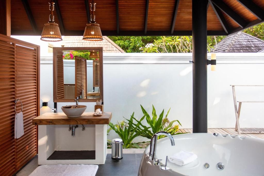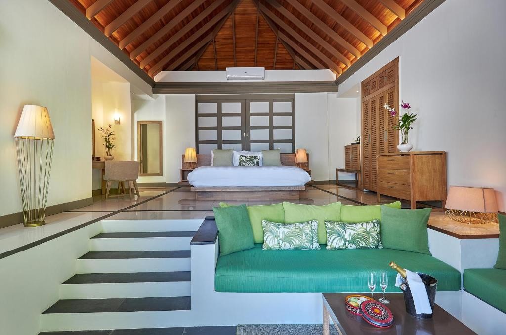 Beachfront Pool Villa е 200 кв.м вила, заобиколена от тропическа зеленина, само на крачки от плажа, с частна плажна кабана, открита и закрита баня със sunken вана, вътрешен и външен душ, частен басейн в ограден двор, подходяща за 2 възрастни, 1 дете и 1 бебе.