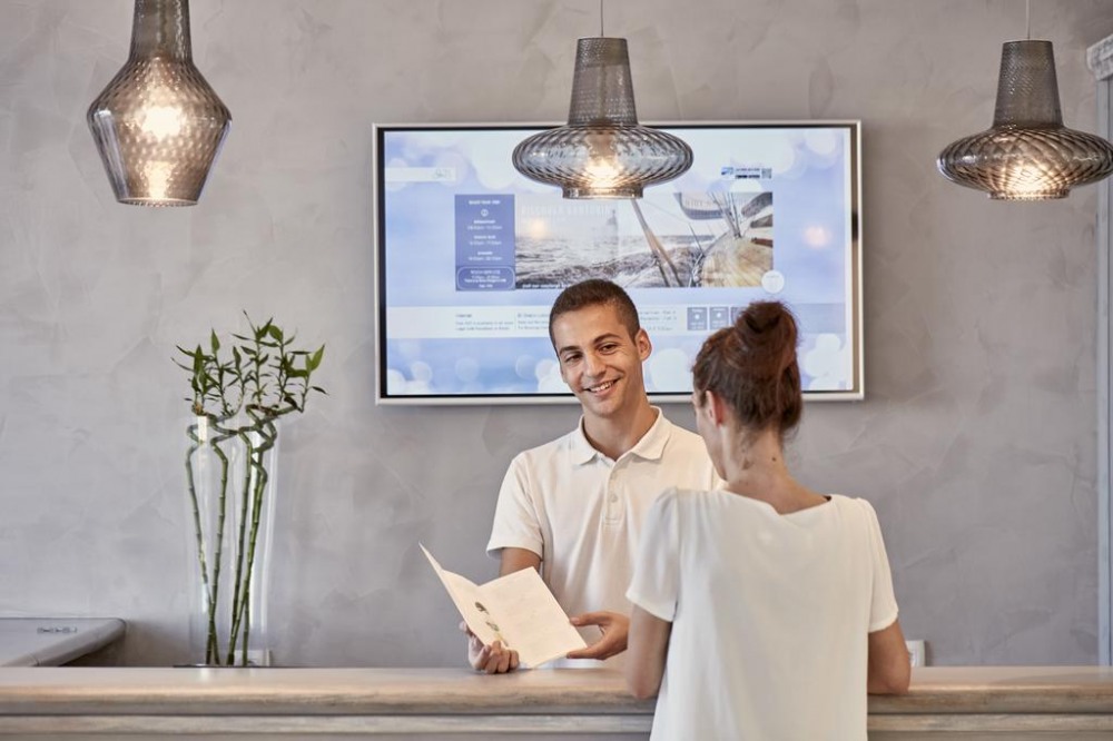 Основен ресторант, бар на басейна, снек бар, 5 басейна, 2 открити джакузита, СПА център, фитнес, ТВ кът, конферентна зала, коли под наем, интернет, лекар (на повикване), услуги пране и гладене, паркинг, безплатен Wi-Fi на територията на хотела. За децата: детски басейн. Плаж: На 15 км. от плаж Камари, на 7 км. от плаж Монолитос, на 14 км. от плаж Периса.