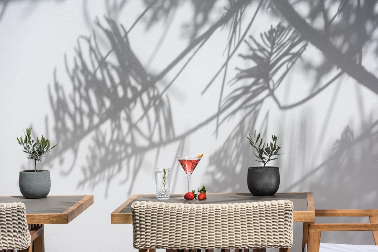 На терасата за закуска се сервира закуска с гръцко кисело мляко, традиционни специалитети и домашни сладкиши. В бара край басейна, заобиколен от палми, се сервират коктейли, кафе и леки закуски.