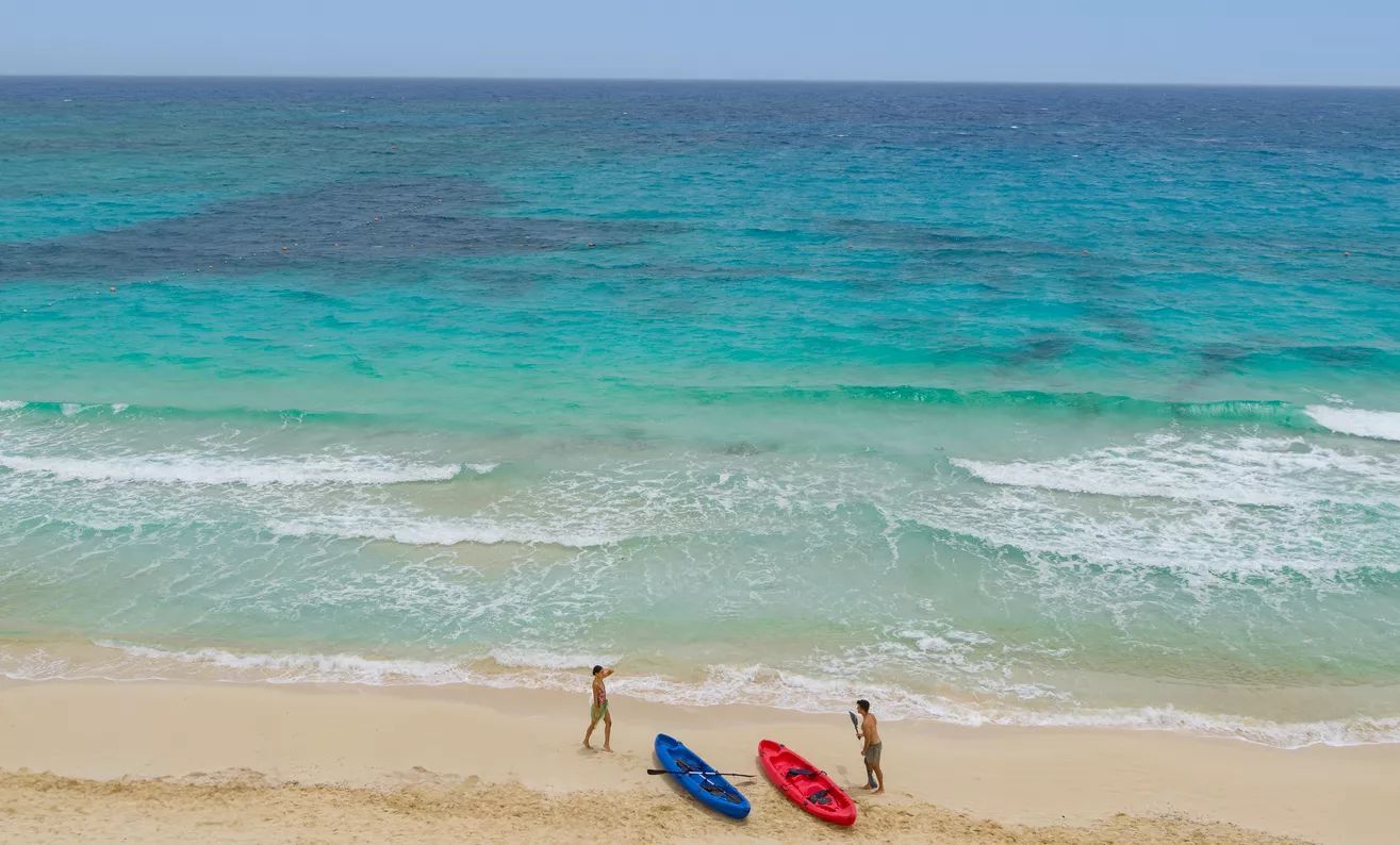 Частен пясъчен плаж с директен достъп до морето и безплатни шезлонги, чадъри и кърпи.