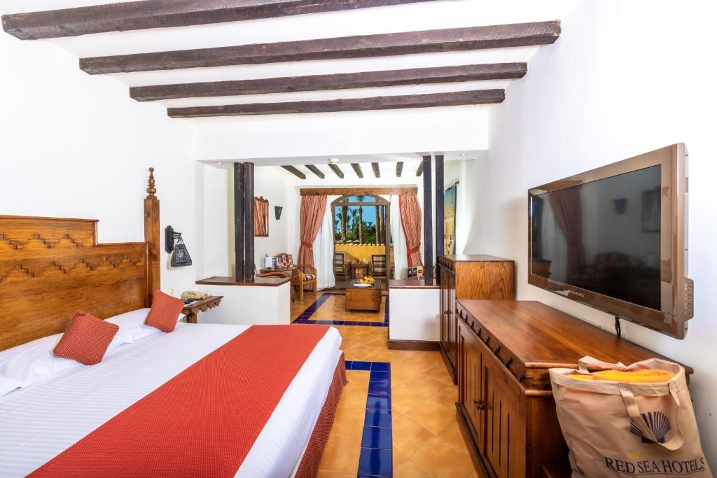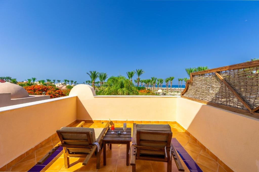 Junior Suite - просторна спалня с двойно легло king size или две единични легла, както и зона за отдих. Други удобства: балкон с изглед към басейна, градината или морето, баня с вана и душ, климатик, сешоар, сейф, телефон, сателитна телевизия, минбар. Капацитет: 2 възрастни + 1 дете.