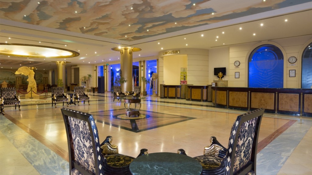 На територията на хотела: Wi-Fi зона, голямо разнообразие от традиционни и международни барове и ресторанти в хотела, основен бюфет ресторант, 3 а ла карт ресторанта – ориенталски, мексикански и италиански, 3 снек бара (2 работят), 3 бара, основен плувен басейн, аква парк басейн, детски басейн, Relax басейн (все още не работи), джакузи (все още не работи).