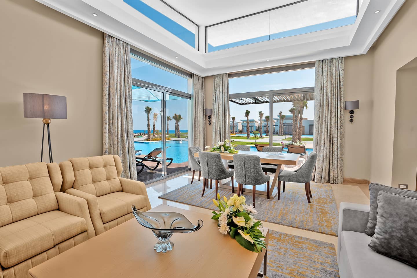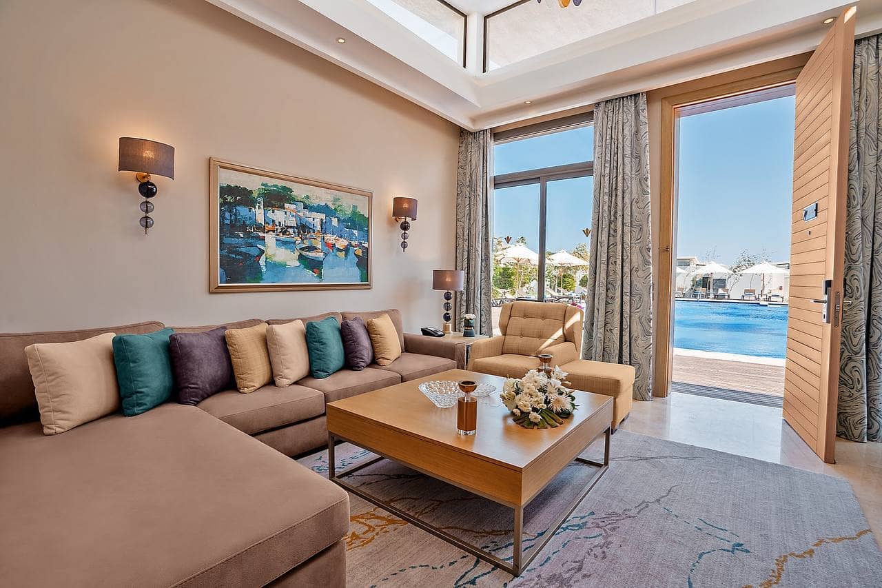 Хотелът разполага с общо 410 стаи, от които Suite Garden View, Suite Sea View (53-73 м2), Superior Suite (Sea & Pool View, последен етаж, 140 м2), Executive Family Suite (Sea View, последен етаж, 170 м2, хол + 2 спални), Lagoon Deluxe Suite (Sea & Pool View, последен етаж, 130 м2, хол с маса за хранене + спалня), Lagoon Swim Up Suite (Sea & Pool View, първи етаж, 130 м2, хол с маса за хранене + спалня), Pool Villa (Pool & Garden View, 105-129 м2, хол с маса за хранене + спалня с баня и тераса), Executive Pool Villa (Pool & Garden View, 240 м2, луксозна и напълно обзаведена вила с една спалня, една стая с две единични легла и една единична спалня, 3 бани, хол, трапезария, голяма тераса), Royal Villa (Sea & Pool View, 944 м2, луксозна и напълно обзаведена вила с 2 двойни спални и 2 стаи с 2 единични легла, една стая за иконом и хол, 4 бани, напълно оборудвана кухня, кът за хранене и камериерска стая, 4 минибара, голяма тераса, личен иконом).
