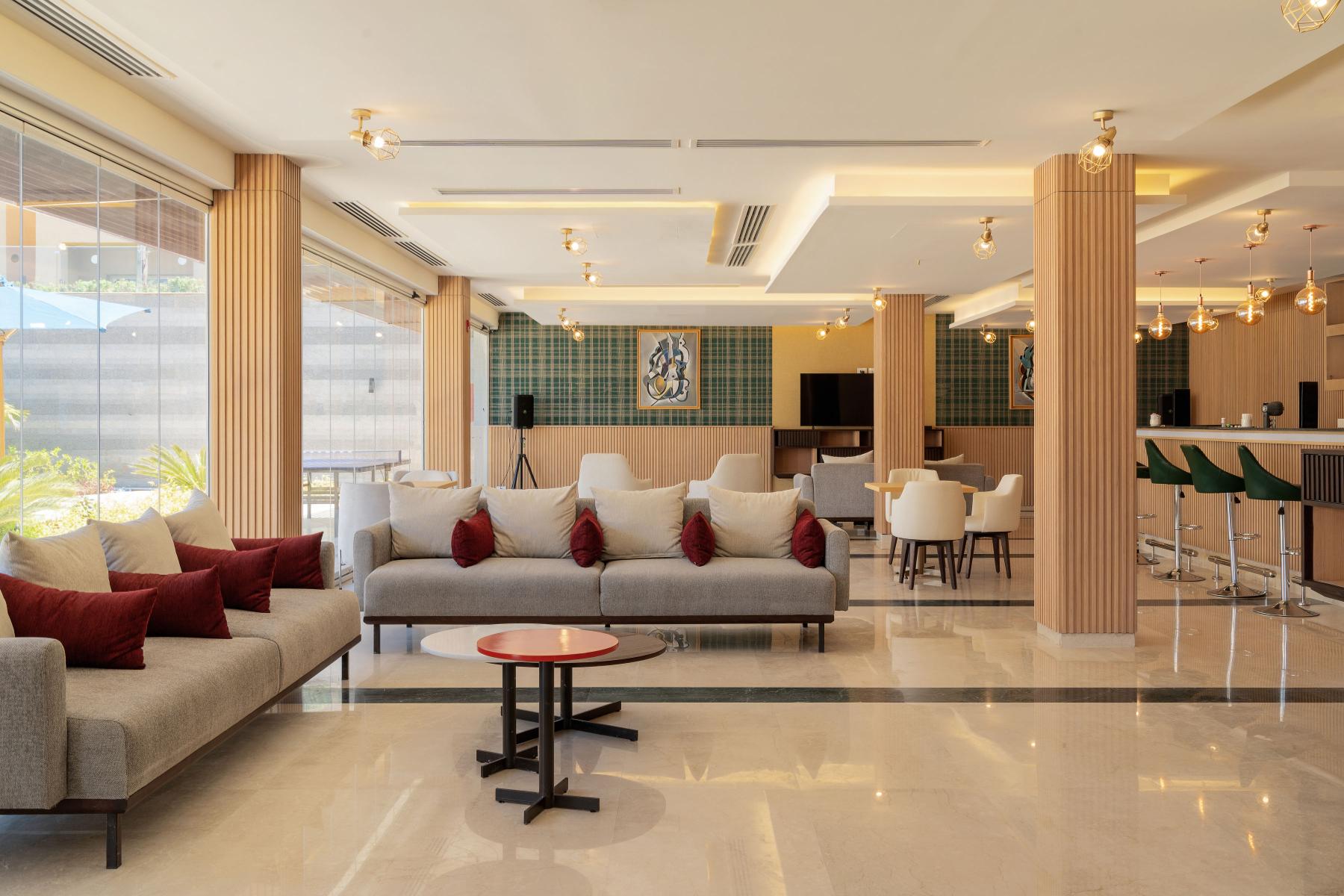Основен ресторант, азиатски a ла карт ресторант (срещу заплащане/с предварителна резервация, съгласно концепцията на хотела/1 безплатно посещение при минимум 7 нощувки), а ла карт ресторант Teppanyaki (срещу заплащане/с предварителна резервация, съгласно концепцията на хотела), 4 бара, 4 открити басейна (1 отопляем), денонощна рецепция, банкомат, обмяна на валута, конферентна зала.