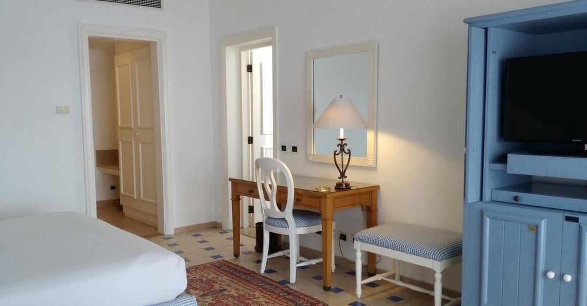 - Standard sea view room: 40 кв.м, една стая стая с двойно легло (с размер 180 см х 200 см) или две единични легла (размер 120 см х 200 см), баня, балкон, изглед към морето, макс. Настаняване в стаята: 2+2 или 3+1. В стаята се осигуряват две допълнителни единични легла, доколкото е възможно, с размер 100 cm x 200 cm, разположен в основната сграда на 1-ви или 2-ри етаж.