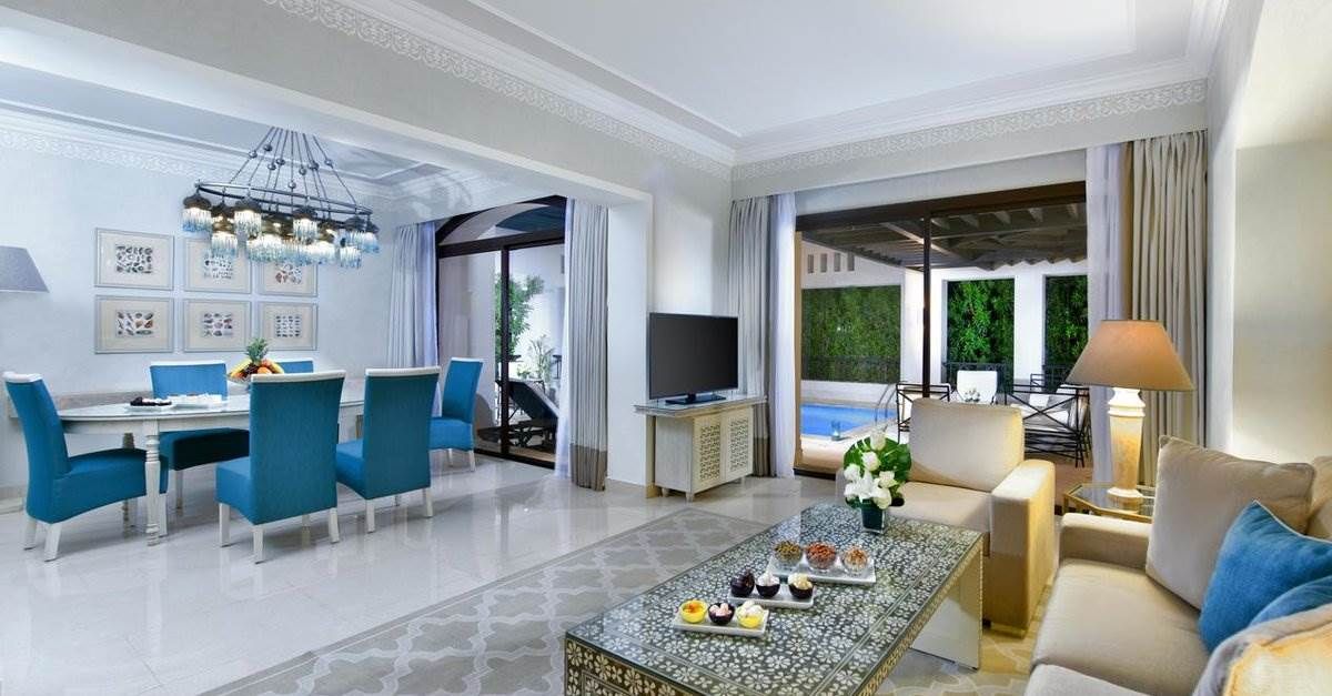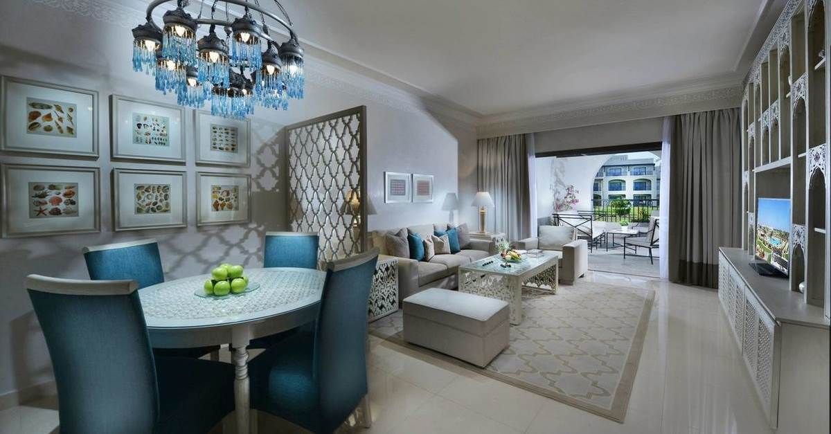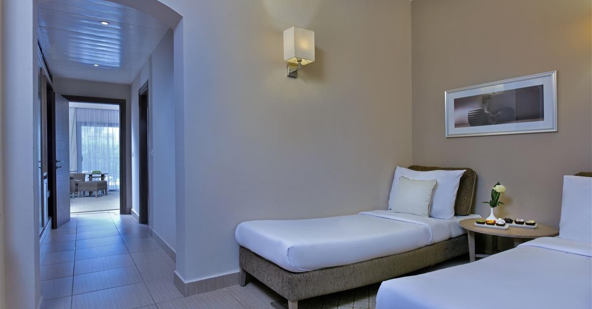- Family pool view room: 58 кв.м., с две стаи, разделени с врата, спалня с двойно легло (размер 180 cm x 200 cm) и хол с два дивана (размер 180 cm x 200 cm и 150 cm x 80 см), баня, балкон или тераса, гледка към басейна. Макс. Настаняване в стаята: 2+2 или 3+1