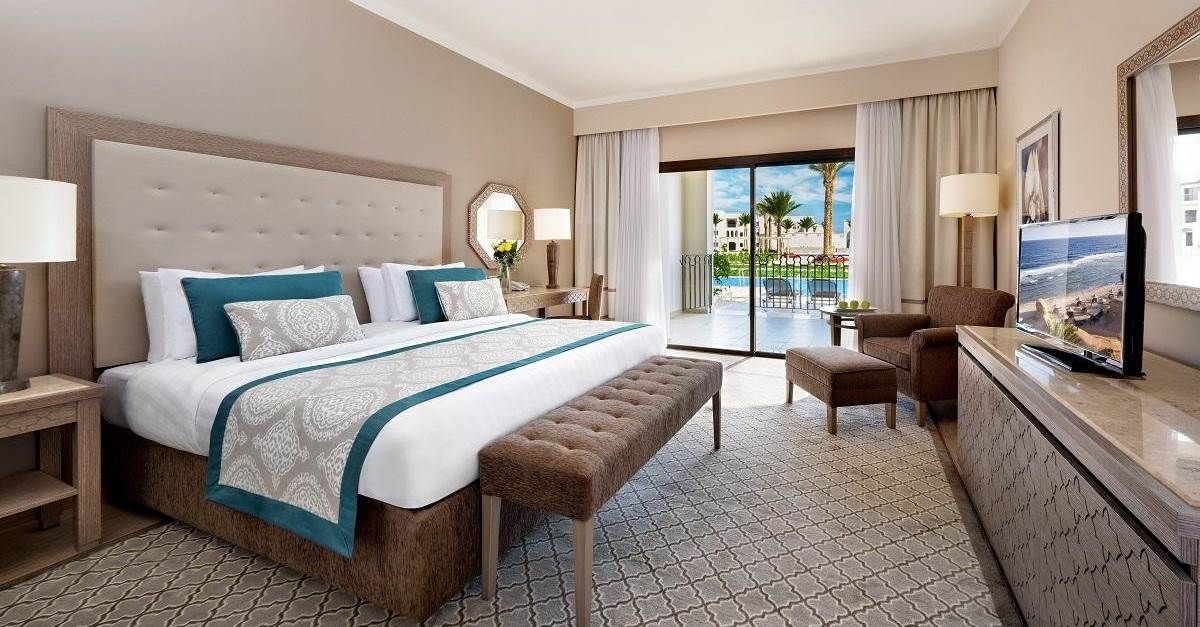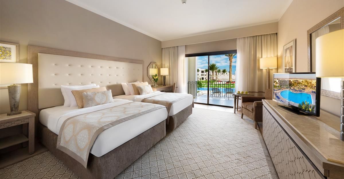 - Superior pool view room: 46 кв.м, една стая стая с двойно легло (размер 180 см х 200 см) или две единични легла (размер 120 см х 200 см), баня, балкон или тераса, гледка към басейна. Макс. Настаняване в стаята: 1+1 или 2