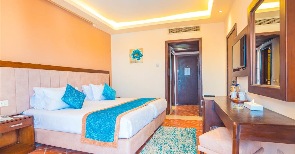 - Standard pool view room: 28 кв.м, една стая стая с двойно легло (размер 180 см х 200 см) или две единични легла (размер 120 см х 200 см), зона за отдих, баня с душ, балкон или тераса, гледка към басейна. Максимално настаняване в стаята: 3. В стаята се осигурява едно допълнително легло, доколкото е възможно, размер 100 см x 200 см.