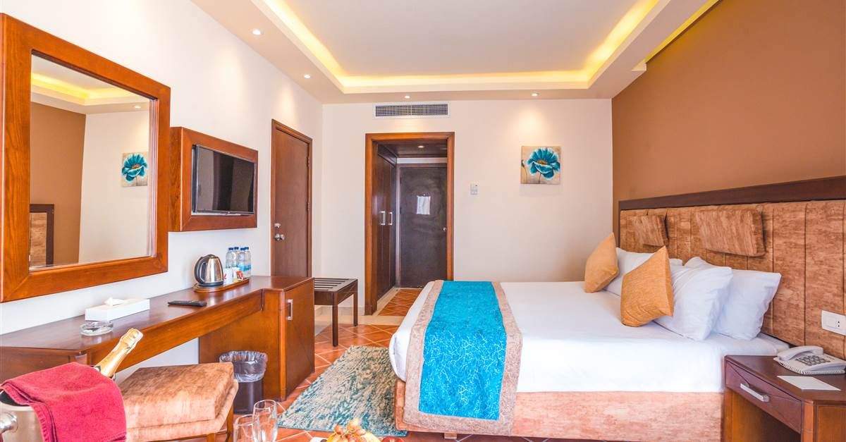 - Standard sea view room: 28 кв.м, помещение с една стая с двойно легло (размер 180 см х 200 см) или две единични легла (размер 120 см х 200 см), зона за отдих, баня с душ, балкон или тераса, изглед към морето. Максимално настаняване в стаята: 3. В стаята се осигурява едно допълнително легло, доколкото е възможно, размер 100 см x 200 см.