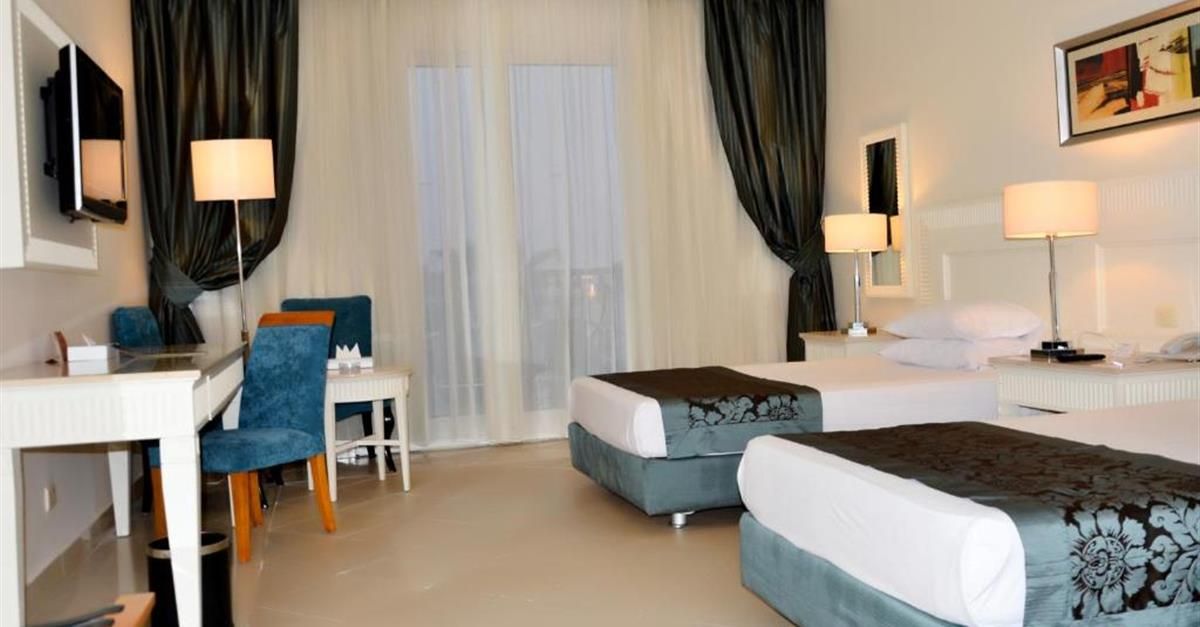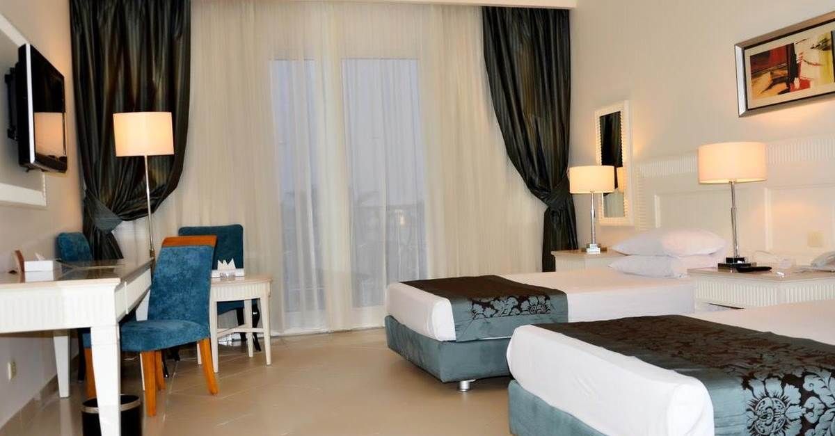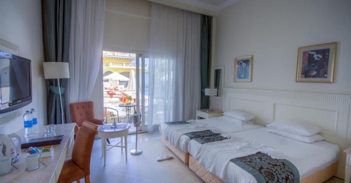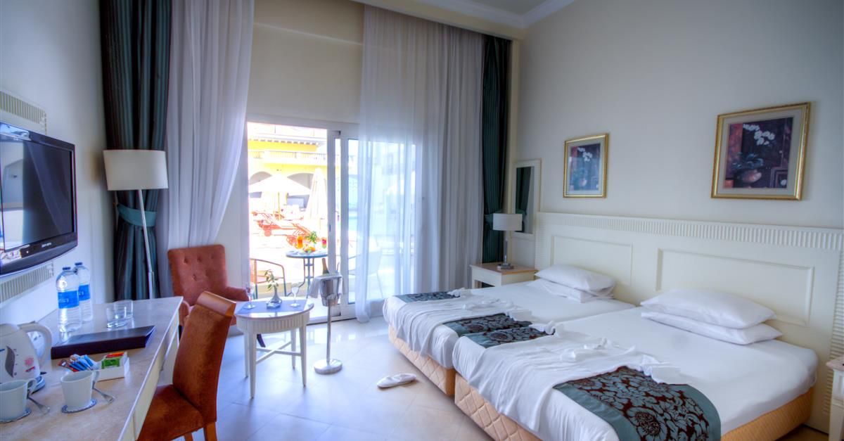 - Deluxe room: 36 кв.м., стая с двойно легло (180 см х 200 см) или две единични легла (120 см х 200 см), баня, балкон или тераса, изглед басейн. Максимално настаняване в стая: 2+2 или 3+1