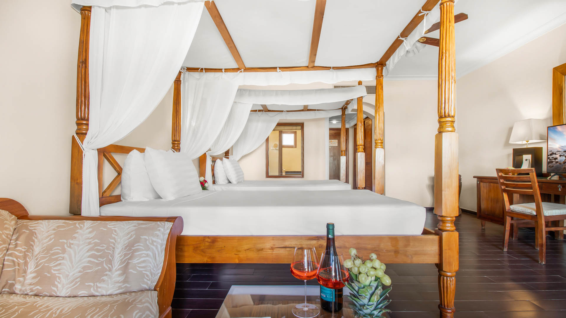 Хотелът разполага с 33 Twin Room Pool View (47 кв.м.). Всички стаи са оборудвани с климатик, телевизор, телефон, баня с вана/душ, сешоар, Wi-Fi, сейф, минибар, балкон/тераса, сет за кафе и чай.