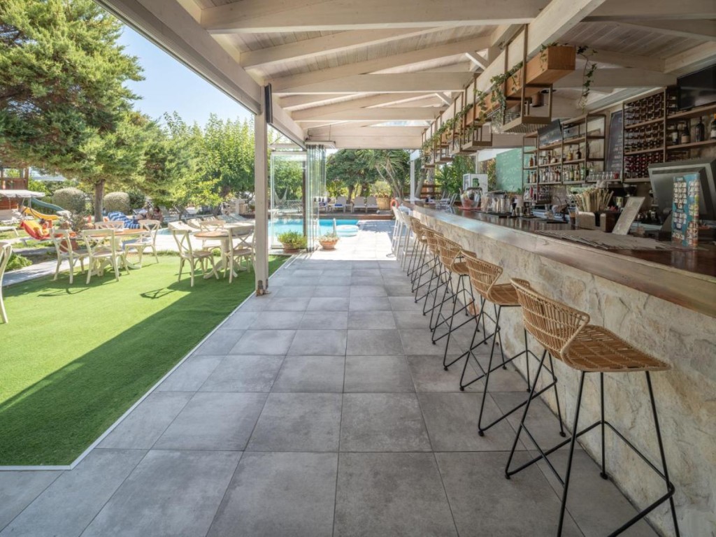 Удобства на хотела: Отпуснете се край открития басейн, заобиколен от зелена растителност, или се отпуснете в уютния салон. Хотелът предлага и различни развлекателни дейности, като плуване, слънчеви бани и разходки по близките плажове.