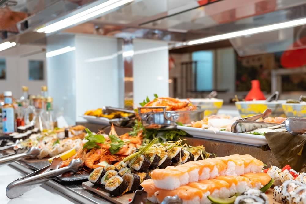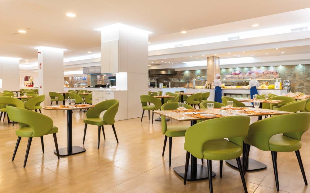 На територията на хотела: Слънчева тераса с шазлонги и чадъри до външния басейн. Основен бюфет-ресторант Irina, предлагащ средиземноморска и интернационална кухня, както и тематични вечери- азиатска, мексиканска и специалитети от острова. Tratoria Don Jaime, също бюфет-ресторант, разположен на обширна тераса до самия плаж. Снек барът се намира точно до детския клуб и сплаш зоната. Бар Никита е отворен през целия ден и предлага коктейли, топли и студени напитки. Не пропускайте да се насладите на залеза от Sky Bar Romanov на покрива на хотела. Анимационни програми за деца и възрастни(вечерни прогрми и забавления през деня).Фитнес център.