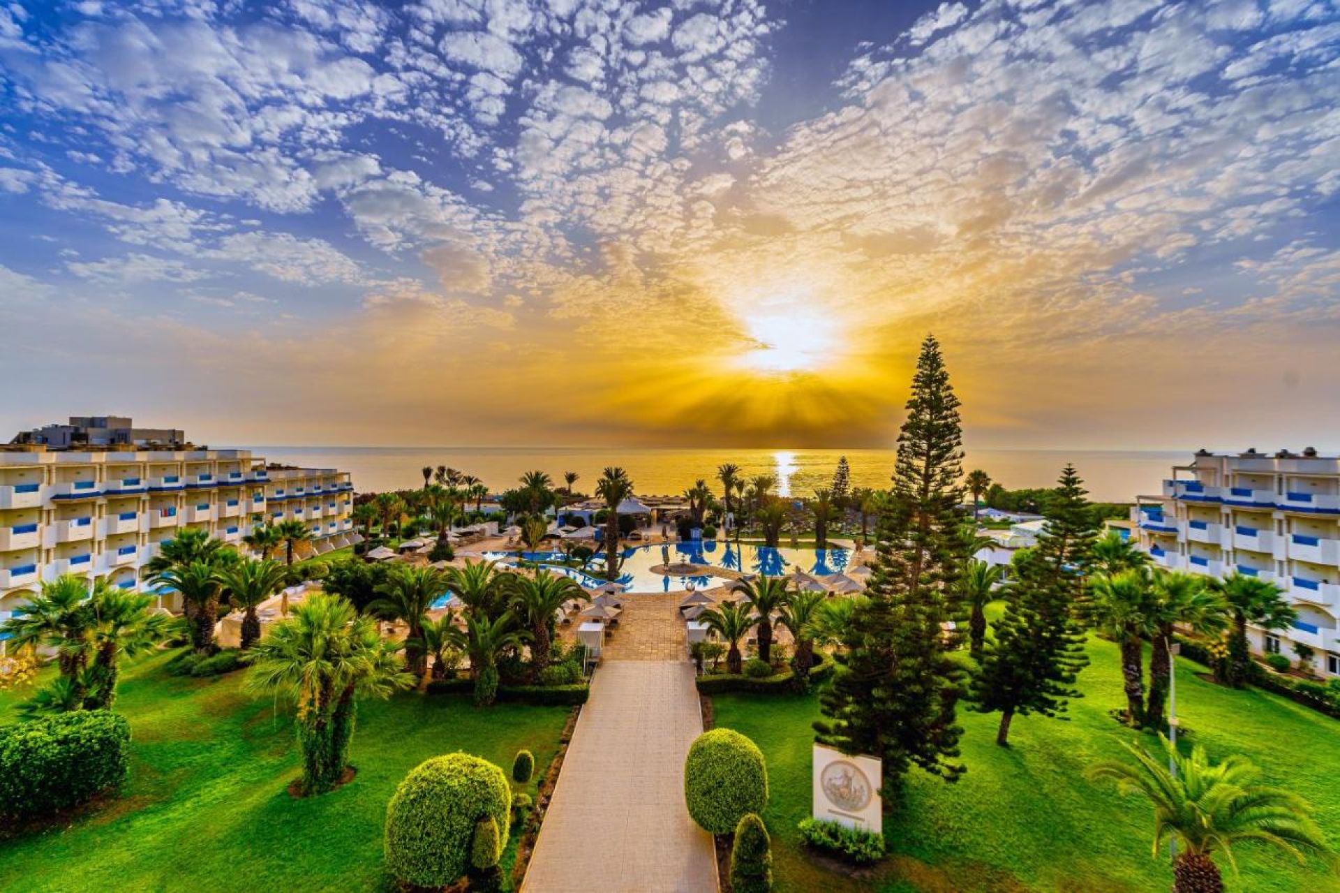 Основен ресторан Le Grenadier, а ла карт ресторант L'Olivier със средиземноморска кухня (платен, работи през летния сезон), а ла карт ресторант Le Laurier с тунизийска кухня (гостите могат да ползват едно безплатно помещение с предварителна резервация), лоби бар El Bey, бар басейн, снек бар, бистро бар La Vague, мавританско кафене, анимация, конферентни зали, сувенирен магазин, СПА център, химическо чистене, външен и вътрешен басейн.