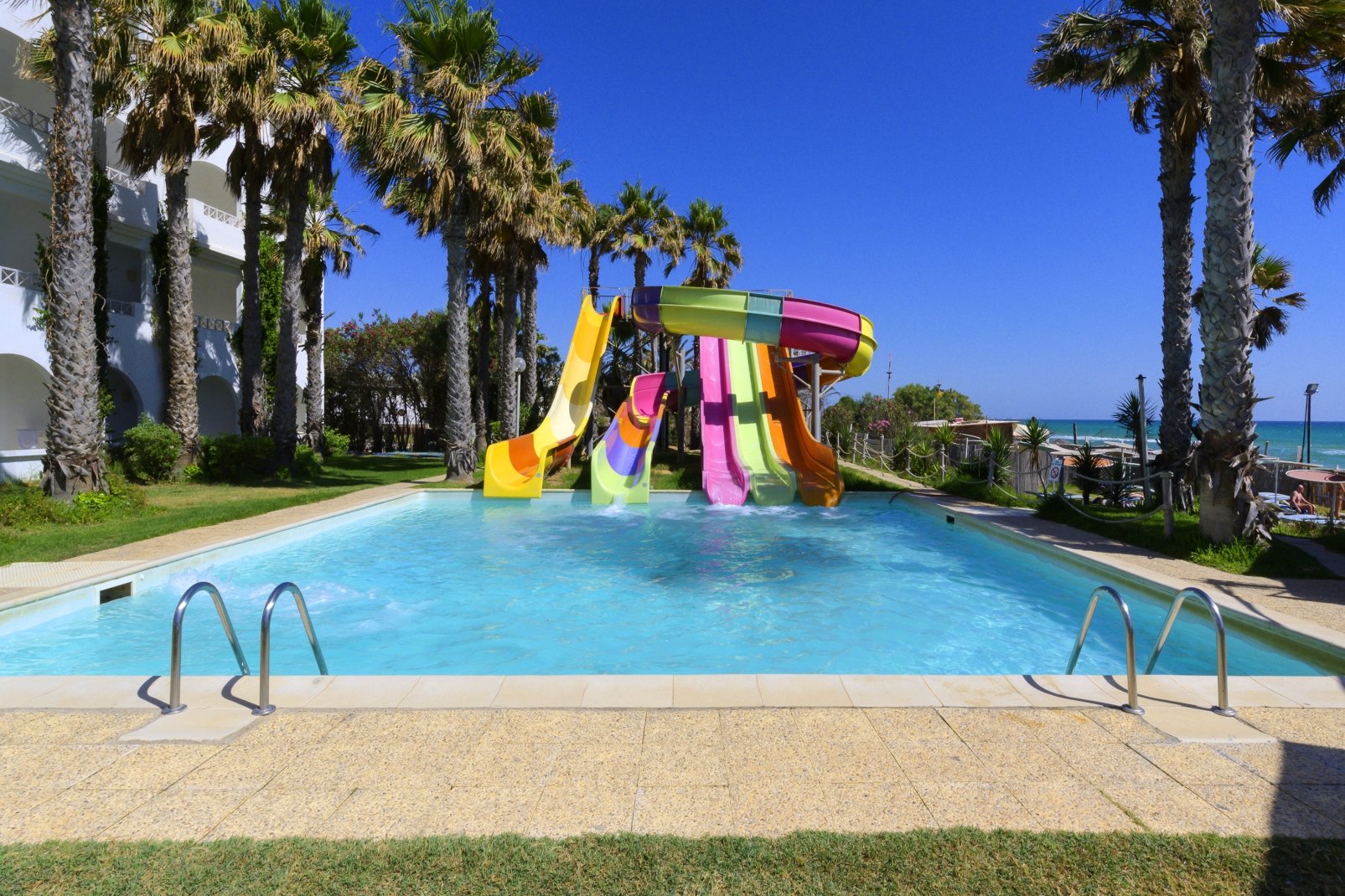 Основен ресторант Thusdrus, 2 а ла карт ресторанта - един с интернационална кухня и втори на плажа, барбекю ресторант (едно безплатно посещение на престой, след предварителна резервация), лоби бар, бар басейн, мавританско кафене, 2 открити басейна, закрит басейн, вътрешен басейн с морска вода в таласо центъра, 5 водни пързалки за възрастни и 1 за деца, анимация, Wi-Fi в лобито, общи части и стаите, сувенирен магазин, обмяна на валута, паркинг.