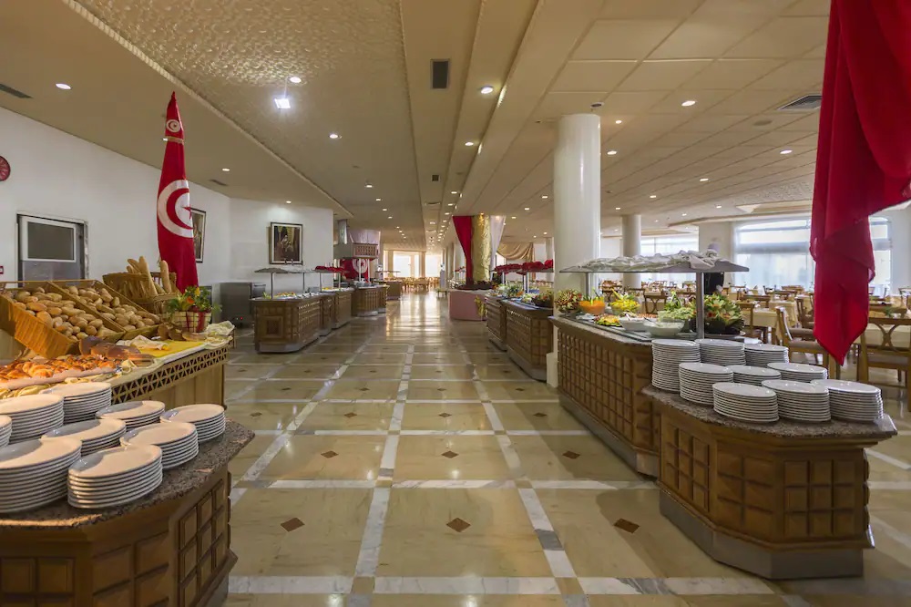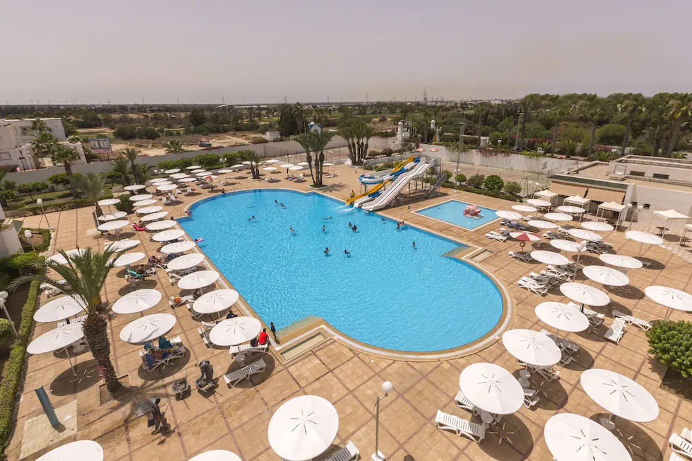 Основен ресторант Tulipe, лоби бар Iris, бар басейн Oeillet, мавританско кафене шиша (платено) , 2 открити басейна, единият с 3 водни пързалки, закрит басейн (отопляем през зимата, затворен от юни до септември), 2 тенис корта, обменно бюро, СПА център, 4 конферентни зали, анимация, 24 часова рецепция, сувенирен магазин.