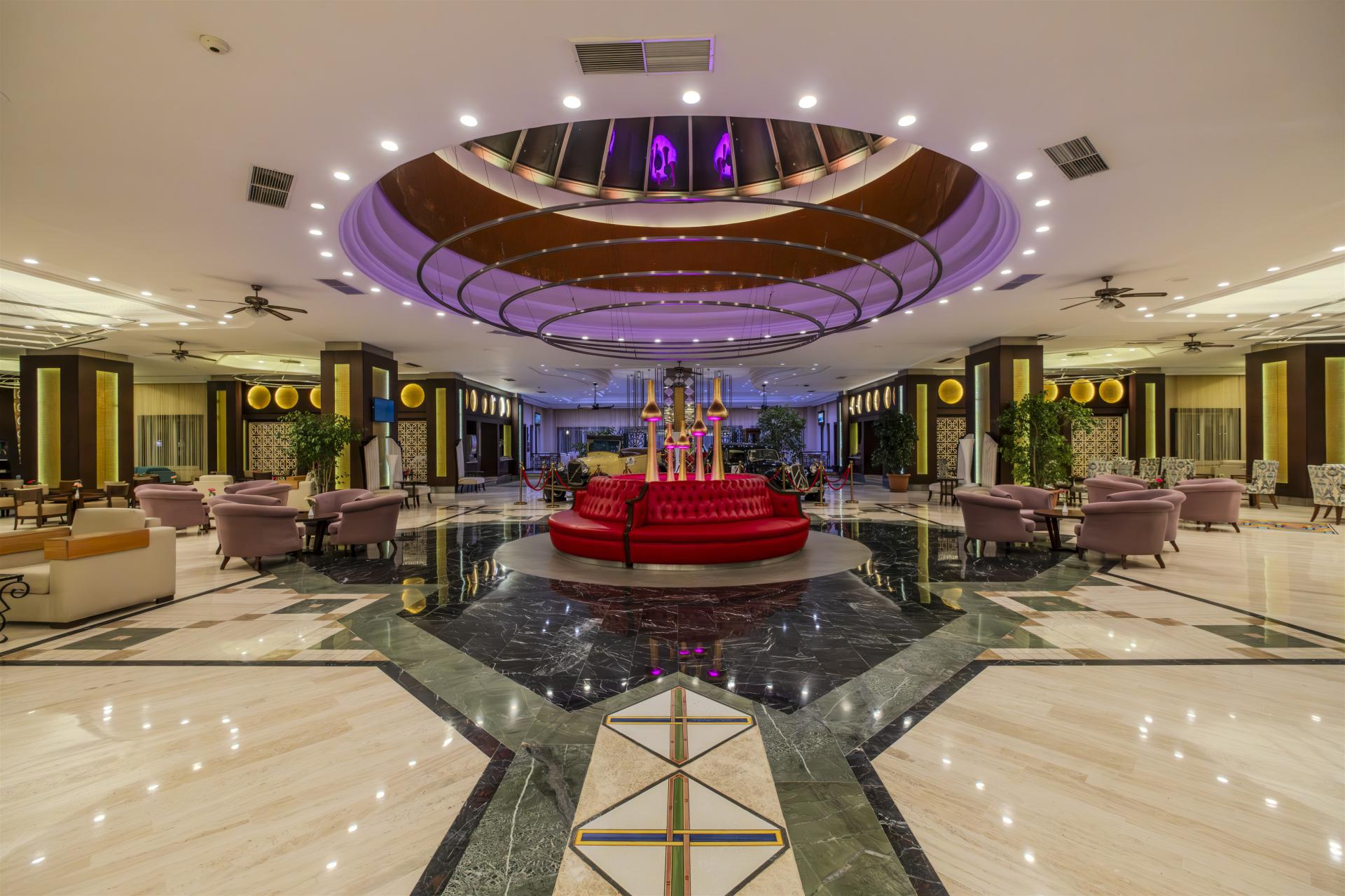 Основен ресторант, 3 а-ла-карт ресторанта (рибен, турски, италиански – срещу заплащане с предварителна резервация, снек ресторант, гьозлеме, сладоледена къща, сладкарница, 5 бара, 2 открити и 1 закрит басейн, 4 водни пързалки, амфитеатър, СПА център, дискотека, магазини, 12 конферентни зали, паркинг.