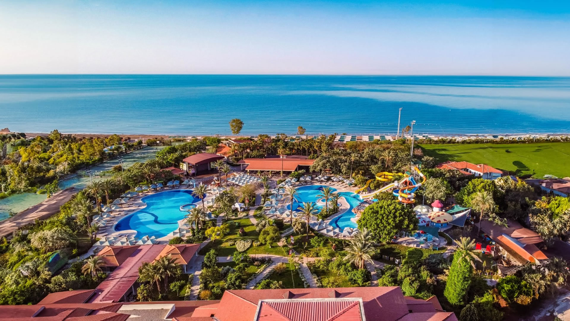 Намира се на 30 км от летище Анталия, на 35 км от центъра на Анталия, на 1 км от центъра на Белек, на брега на морето. Построен 1997 г., на обща площ от 100 000 м2. Реновиран 2017 г.