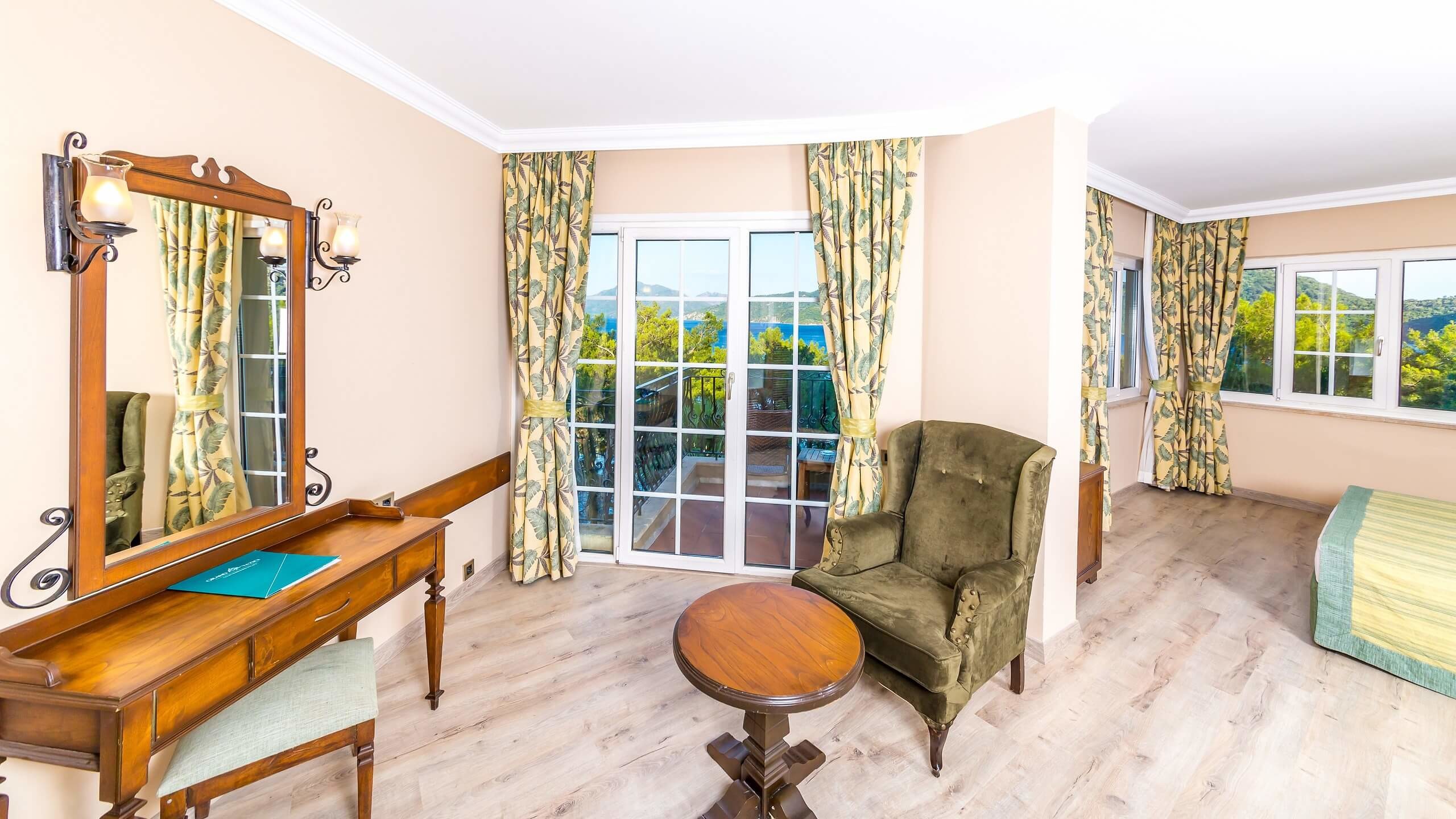 Хотелът разполага общо с 459 стаи, разположени в основната и в клубната част. В основната сграда:187 Standard room sea view/ land view (двойно легло ,1 единично, 24м²), Family room (1 френско легло, 2 единични легла,1 диван, 45 м²). В клубната част са: Standard room land view/sea view (двойно легло , 1 единично, 26 кв.м), Family room (двойно легло, 2 единични легла, 1 диван, 50 кв.м). Всички стаи са оборудвани с климатик, телевизор, телефон, баня с душ/вана, сешоар, мини бар (безплатно ежедневно зареждане с вода), сейф (безплатен), балкон, Wi-Fi интернет (безплатен). Почистване на стаите – всеки ден, смяна на спалното бельо и кърпите – 3 пъти в седмицата.