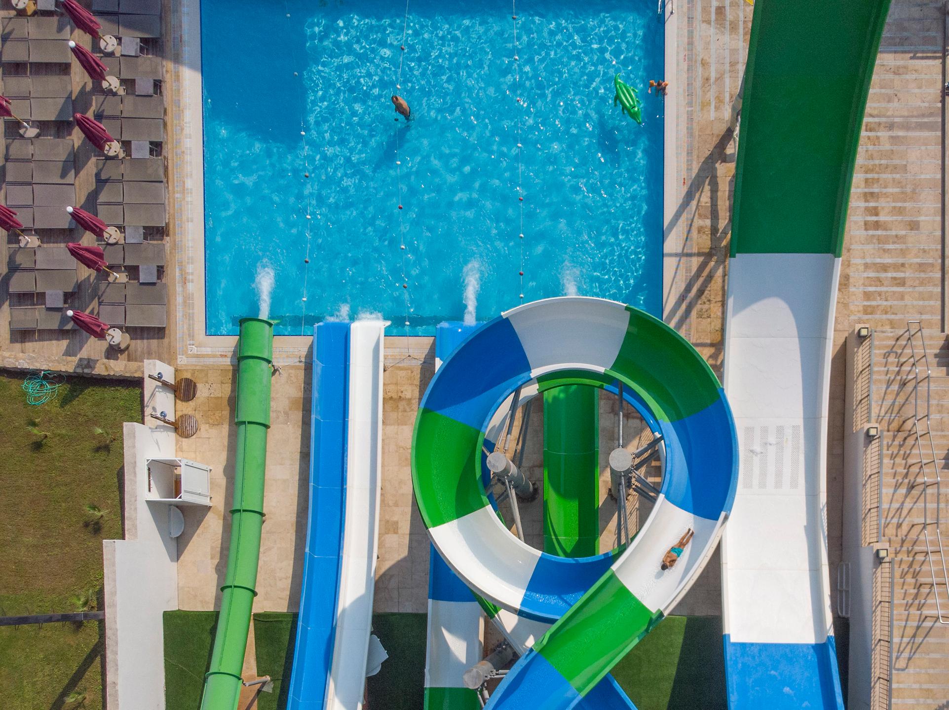 За децата: Детско меню, детски басейн, водни пързалки, детска площадка, мини клуб (4–12 г.), мини дискотека.