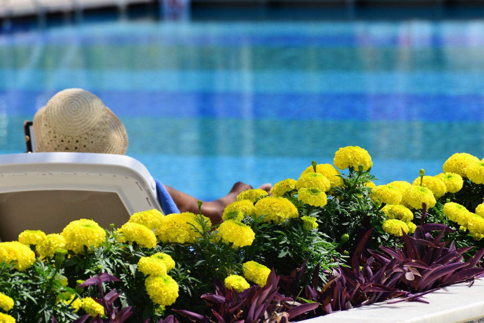Собствен, пясъчен, със сертификат Син флаг. Чадъри, шезлонги и матраци на плажа и при басейна - безплатно.