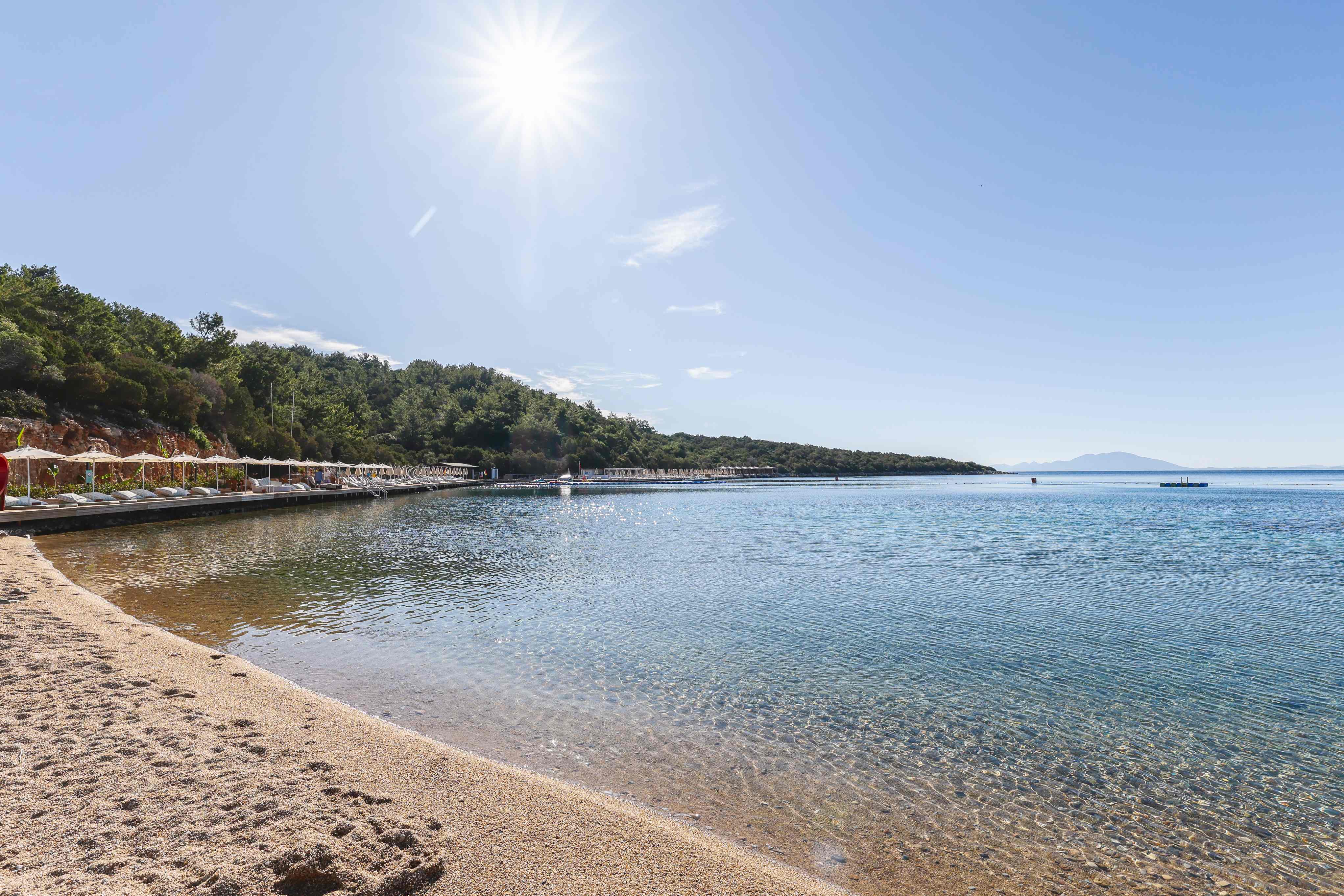 Собствен, пясъчен, платформа. Чадъри, шезлонги и плажни кърпи на плажа и при басейна – безплатно.