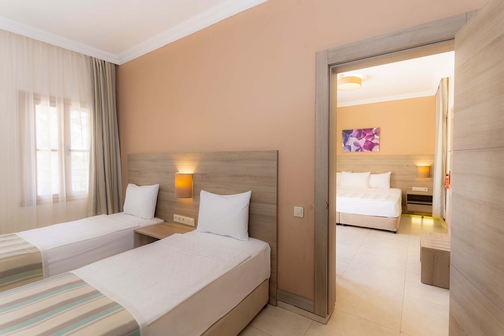 Хотелът разполага с общо 288 стаи, от които 101 разположени в 3-етажна основна сграда Main building и 187 Club Room в къщички. Main Building Standard (стаи в основната сграда – 21 м²), Club Room (стаи в отделни къщички – 20 м²), Family Junior Club Room (две отделни стаи с двуетажно легло – 28 м²), Family club room (две отделни стаи с тераса или балкон – 40 м²), Deluxe family club room (две стаи с тераса или балкон – 40 м²).