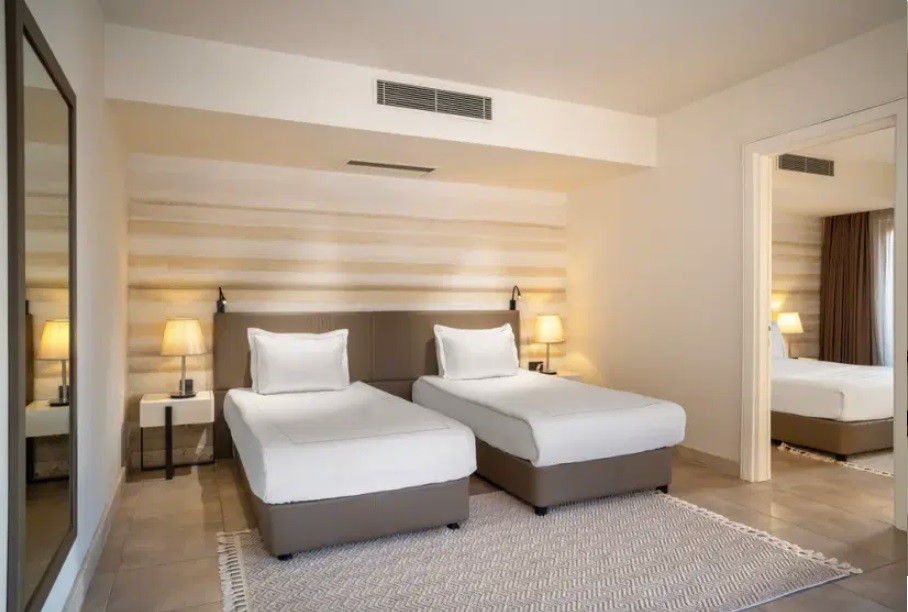 Стаи Land View (спалня, баня, с изглед суша - 30 м²), Sea View Room (спални, баня, с изглед море - 30 м²), Select Room Sea View (1 спалня, 1 баня, с изглед море - 30 м²), Family Room Sea View (2 спални, 1 баня, с изглед море - 45 м²), Family Select Sea View (2 спални, 1 баня, с изглед море - 40 м²).