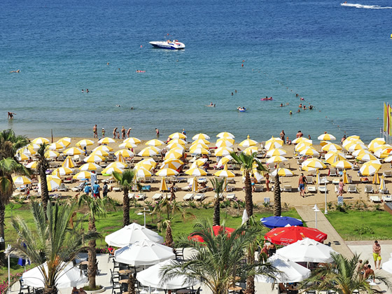 Хотела разполага със собствен плаж, пчсъчно-чакълест и бар на плажа - безплатно.На басейна и на плажа: чадъри, шезлонги, матраци – безплатно. Плажни кърпи: срещу депозит.
