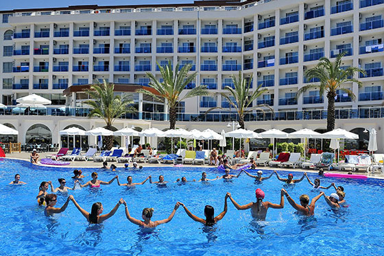 Ресторант (бюфет), бар, диско бар, фитнес зала, аеробика, турска баня, сауна, масаж, фризьорски салон, козметичен салон, пералня, открит басейн, плажен волейбол, тенис на маса, билярд/снукър, водни спортове, паркинг, плаж - собствен, пясък. За децата: детски басейн, 3 водни пързалки ,детска площадка, мини клуб,Бар на плажа - безплатно.