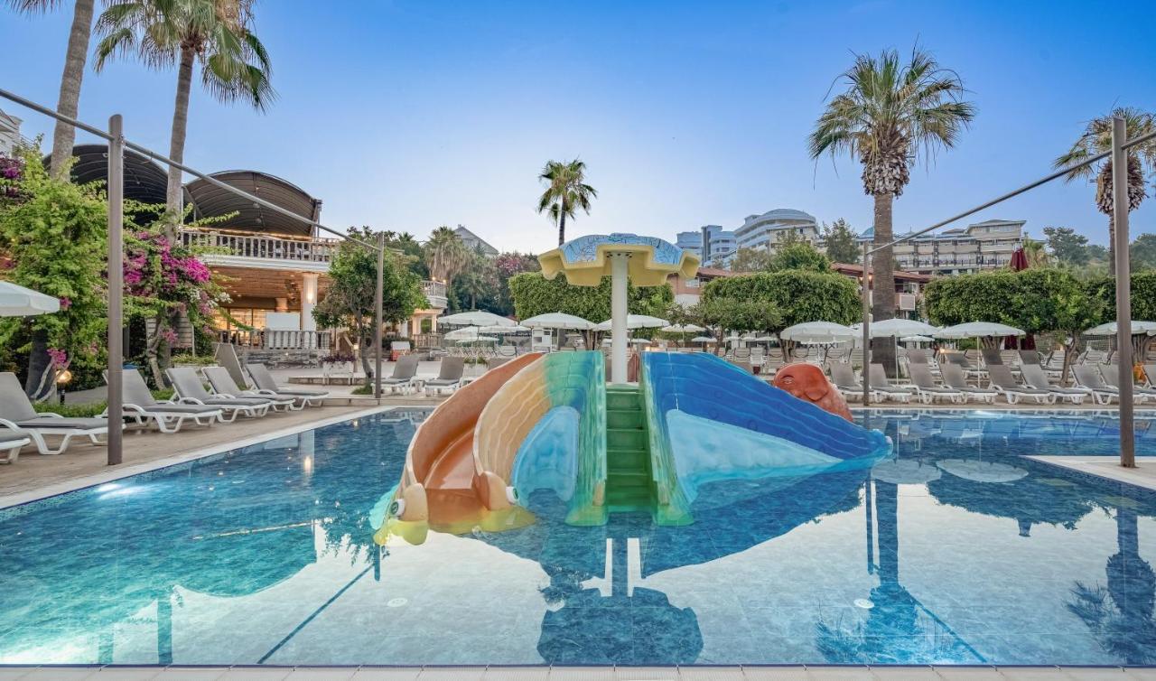 Основен ресторант, снек бар, гюзлеме, сладкарница, 4 бара, 2 открити басейна, 1 закрит басейн (отполяем през зимния сезон), водни пързалки (общ достъп с хотел Justiniano Club Alanya), СПА център, магазини, конферентна зала.
