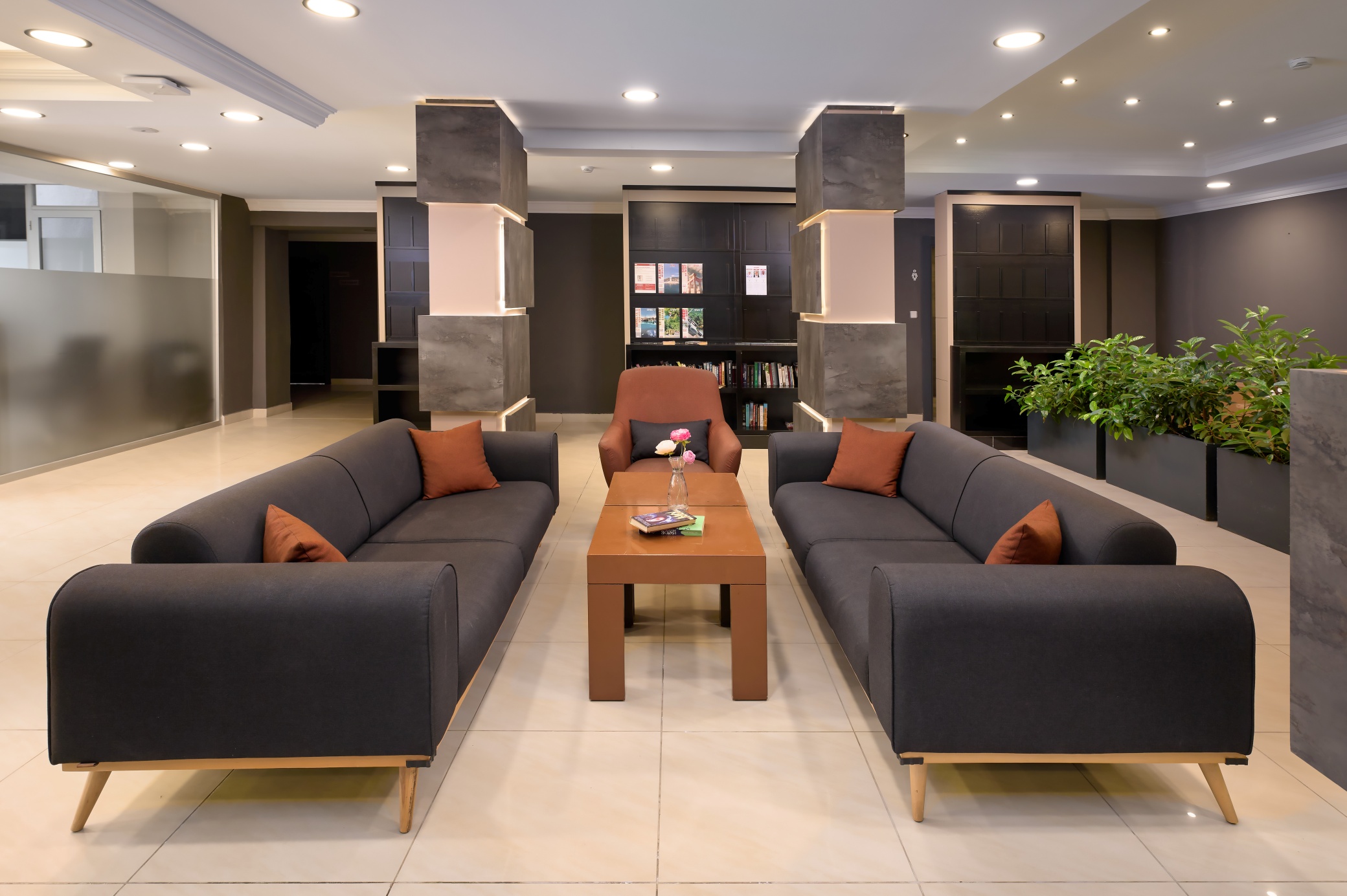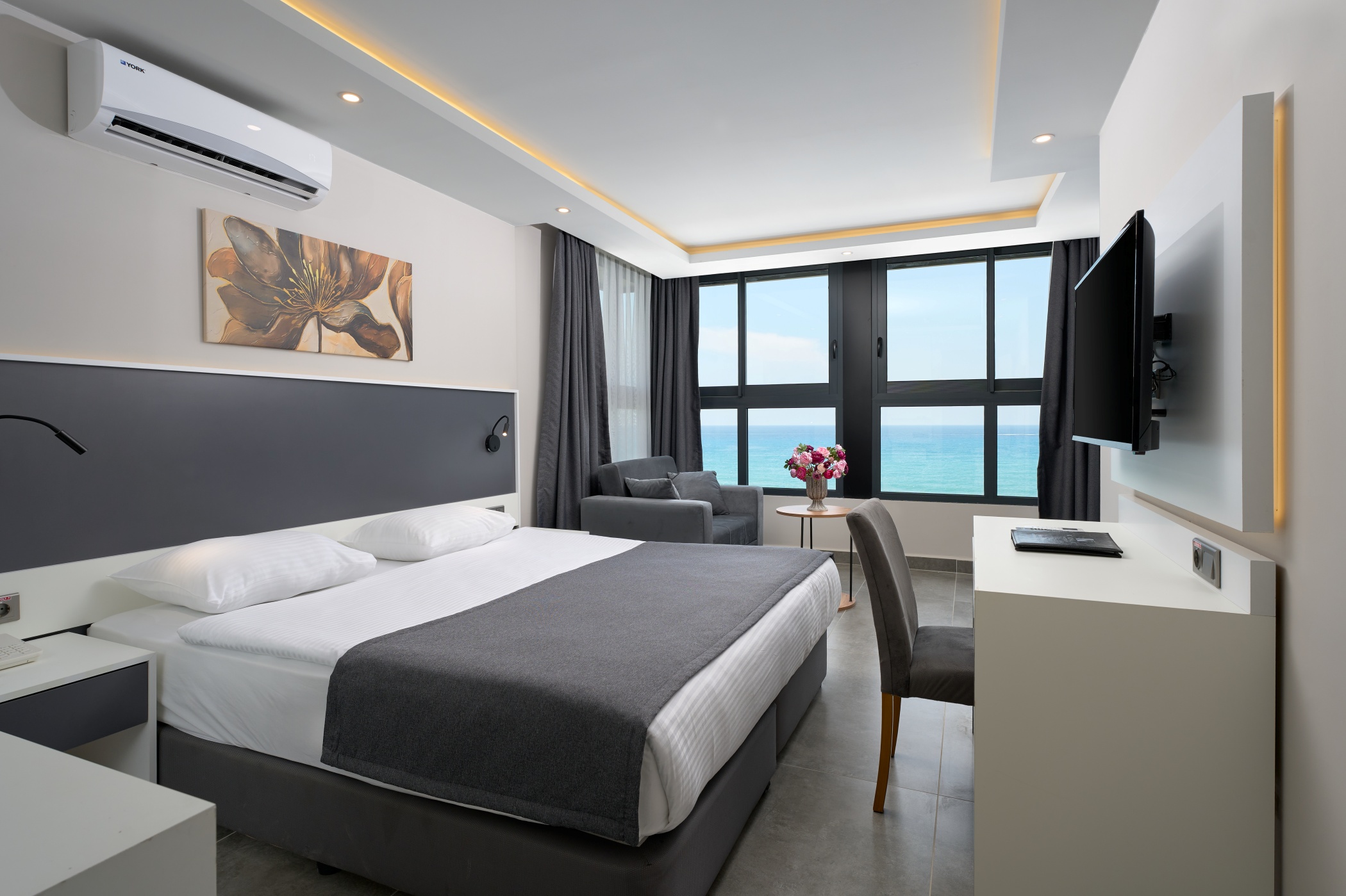 Хотелът разполага с общо 214 стаи, разположени в 3 шестетажни корпуси, от които 185 Standard room (18-25 м2), 2 Handicapped room 25 m², 28 Family room (2 спални, 1 баня – 55 м2). Всички стаи са оборудвани с климатик, телевизор, телефон, баня с душ/вана, сешоар, минибар (срещу заплащане), сейф (срещу заплащане), балкон/ тераса. Почистване на стаите всеки ден - смяна на спалното бельо и кърпите - 2 пъти в седмицата.