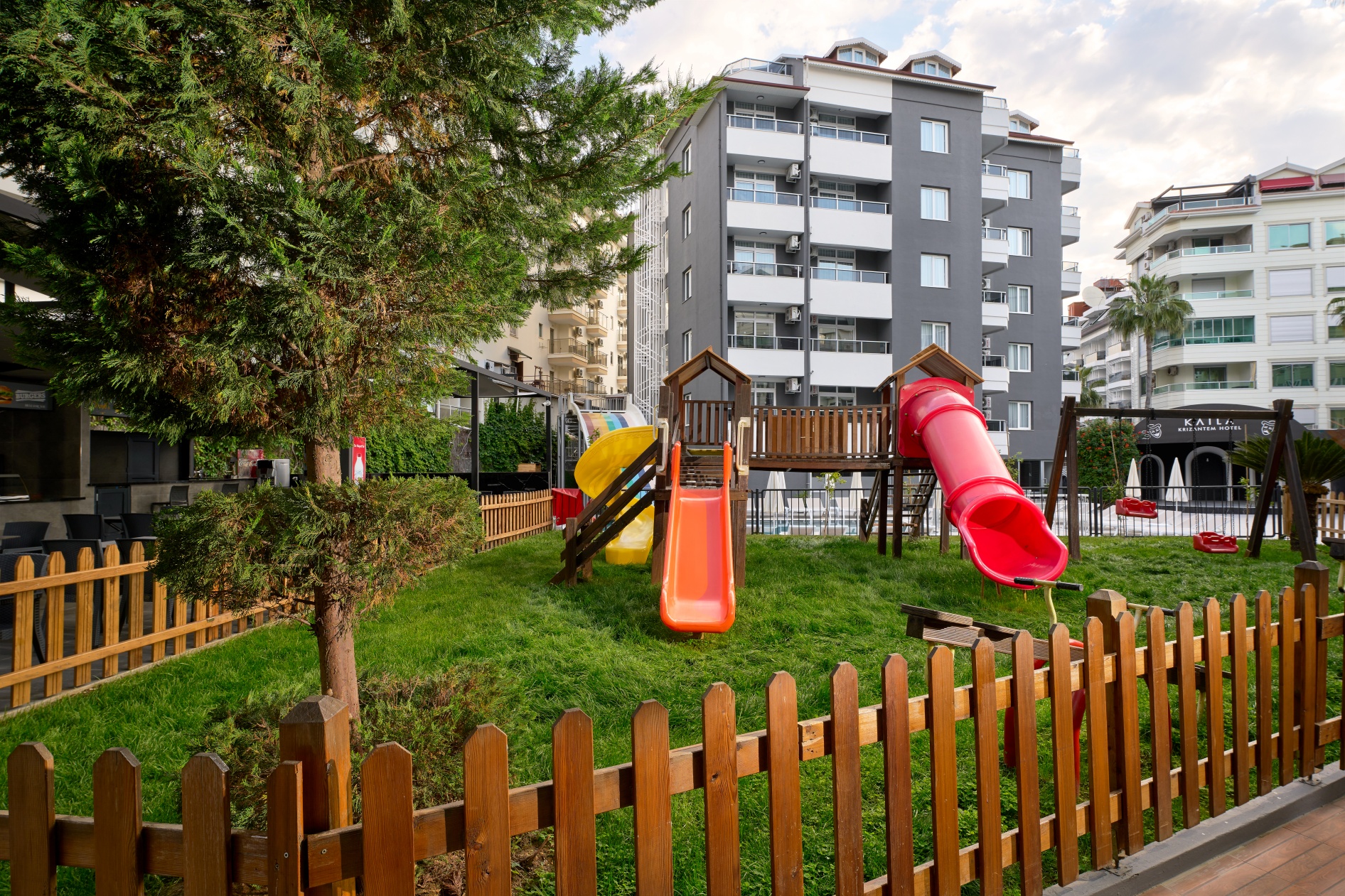 Намира се на 135 км. от летище Анталия, на 140 км. от центъра на Анталия, на 3 км. от центъра на Алания, на 250 м. от брега на морето. Построен е през 1999 г., с обща площ от 5.800 м2, реновиран през 2005 г.