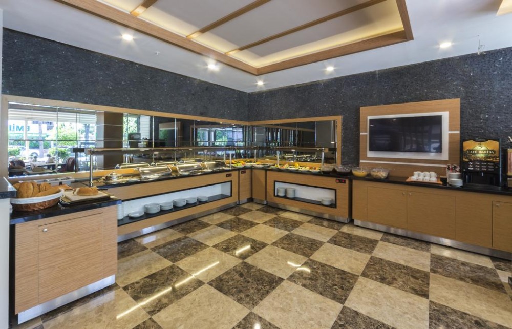 Основен ресторант, три бара, два открити басейна, два детски басейна, дартс и билярд, тенис на маса, безжичен интернет в лоби и в стаите. Плаж:чадъри и шезлонги на градския плаж на Алания срещу допълнително заплащане. Безплатно ползване на чадъри и шезлонги при басейна.
