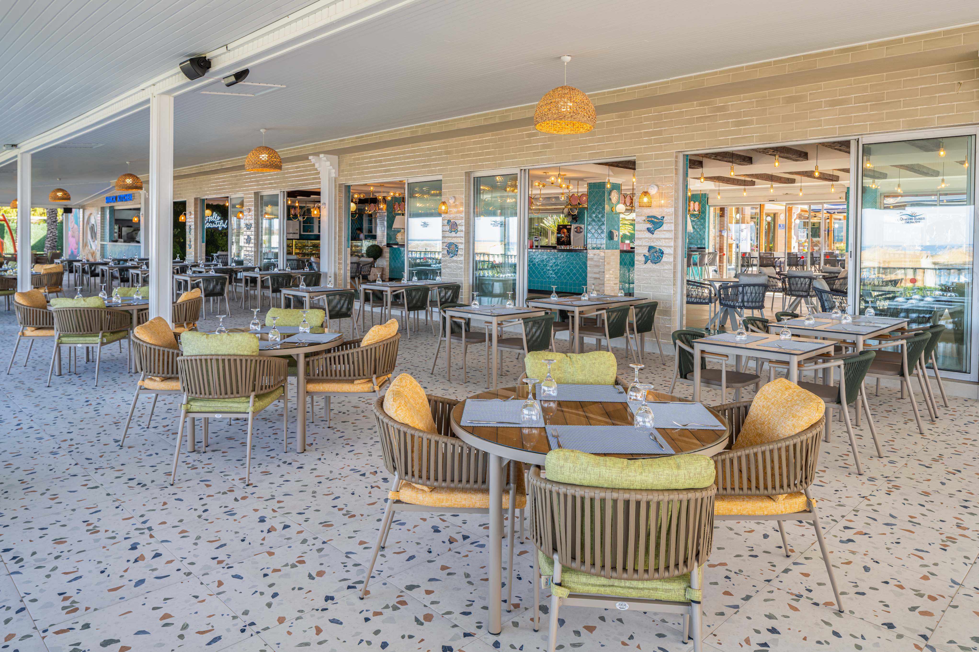Основен ресторант, 2 а-ла-карт ресторанта (мексикански, морски –1 безплатно посещение на 1 от ресторантите при минимум 7 нощувки, с предварителна резервация), сладкарница, 3 бара, 4 открити басейна, аквапарк с 4 водни пързалки, СПА център, магазини.
