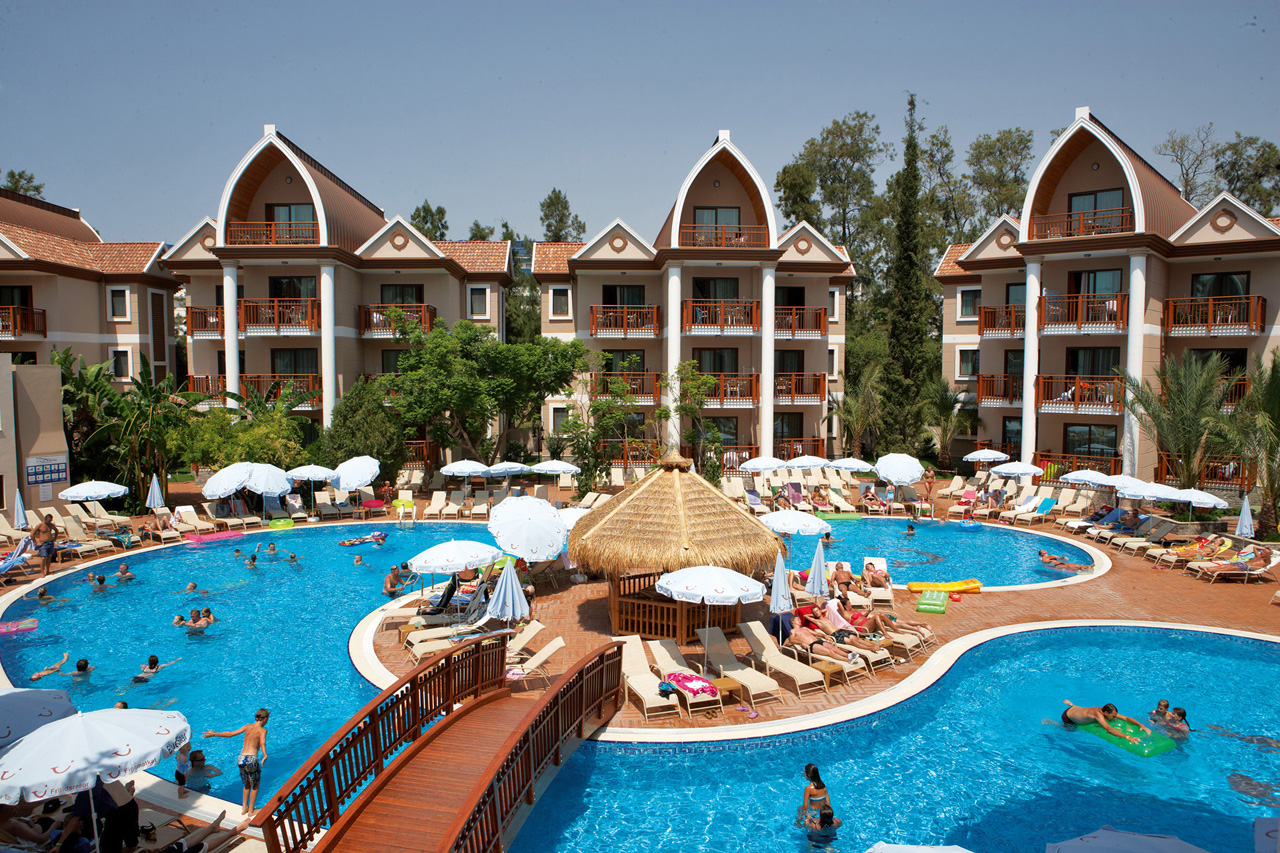Намира се на 110 км от летище Анталия, на 120 км от центъра на Анталия, на 12 км от центъра на Алания, на брега на морето. Хотелът е с обща площ от 33 000 м2.