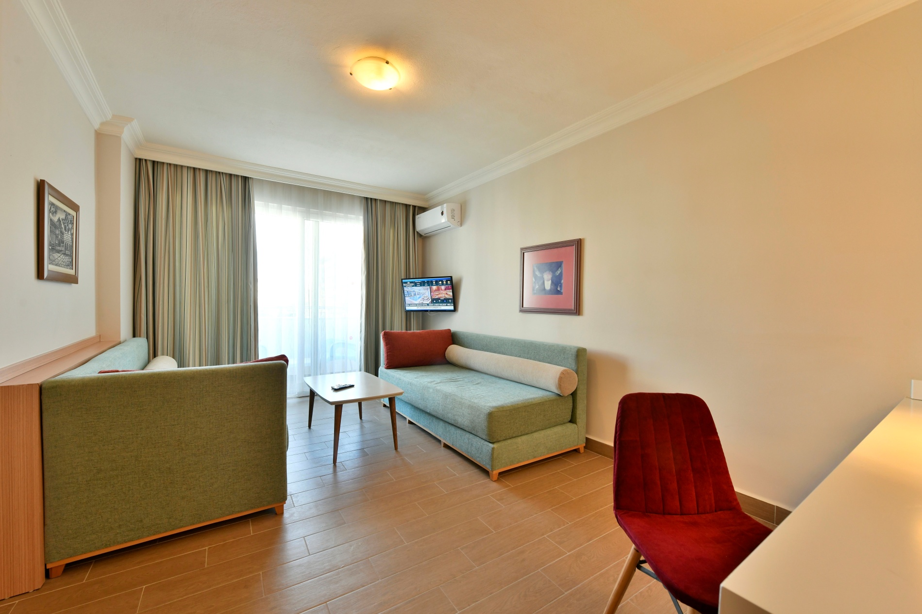 Хотелът разполага с общо 420 стаи, разположени в 2 основна сграда и една анекс сграда, от които Premium Standard Room (35м2), Standard Double Room (20м2), Family Room 1 (спалня, хол, баня - 42м2), Family Room 2 (спалня, хол, баня - 42м2, намират се в анекс сграда). Всички стаи са оборудвани с климатик, телевизор, телефон, баня с душ/вана, сешоар, минибар (безплатен - eжедневно се запълва с безалкохолни напитки и вода), сейф (безплатен), WI-FI (безплатен). Почистване на стаите и смяна на кърпите - всеки ден, смяна на спално бельо – 2 пъти седмично.
