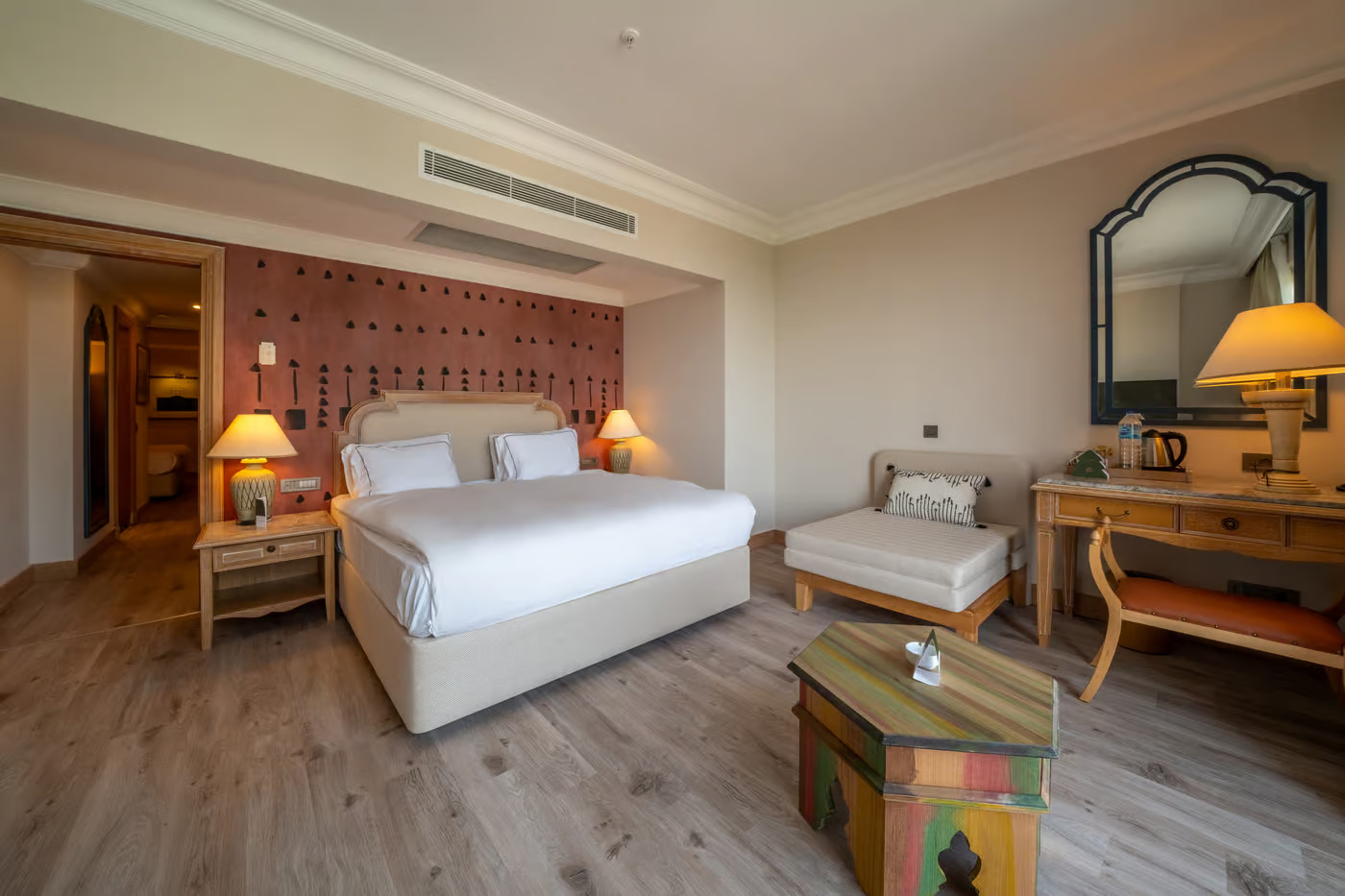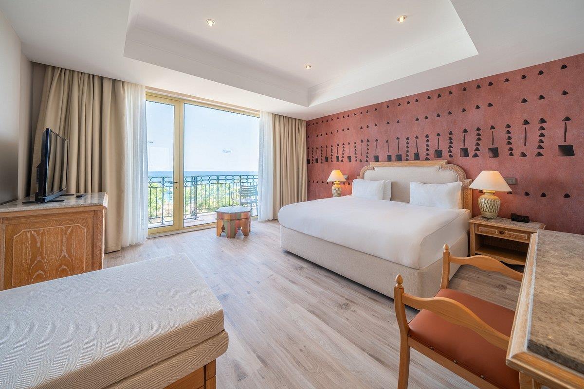 192 Main Building Land room (с изглед градина - 25 м2), 90 Main Side Sea room (с частичен изглед море - 25 м2), 30 Main Building Family room (2 спални, 1 баня - 56 м2), 22 Main Building Junior Suite Land room (1 спалня, хол, 1 баня с изглед градина - 45 м2), 28 Main Building Junior Suite Side Sea room (1 спалня, хол, 1 баня - с частичен изглед море - 45 м2), 11 Main Building Deluxe Suite Side Sea room (1 спалня, хол, 1 баня - с частичен изглед море - 82 м2), 5 Main Building Swim Up room (с изглед градина и директен достъп до общ басейн - 43 м2), 6 Main Building Swim Up Family room (2 спални, 1 баня - с изглед градина - 71 м2), 2 Loft Deluxe with Private pool (1 спалня, 1 баня с директен достъп до частен басейн - 50 м2), Loft Suite with Private pool (2 спални + трапезария, 1 баня, директен достъп до частен басейн - 110 м2), Loft Premium Suite with Private pool (3 спални, 1 хол, 1 гардеробна + трапезария, 3 бани, директен достъп до частен басейн).