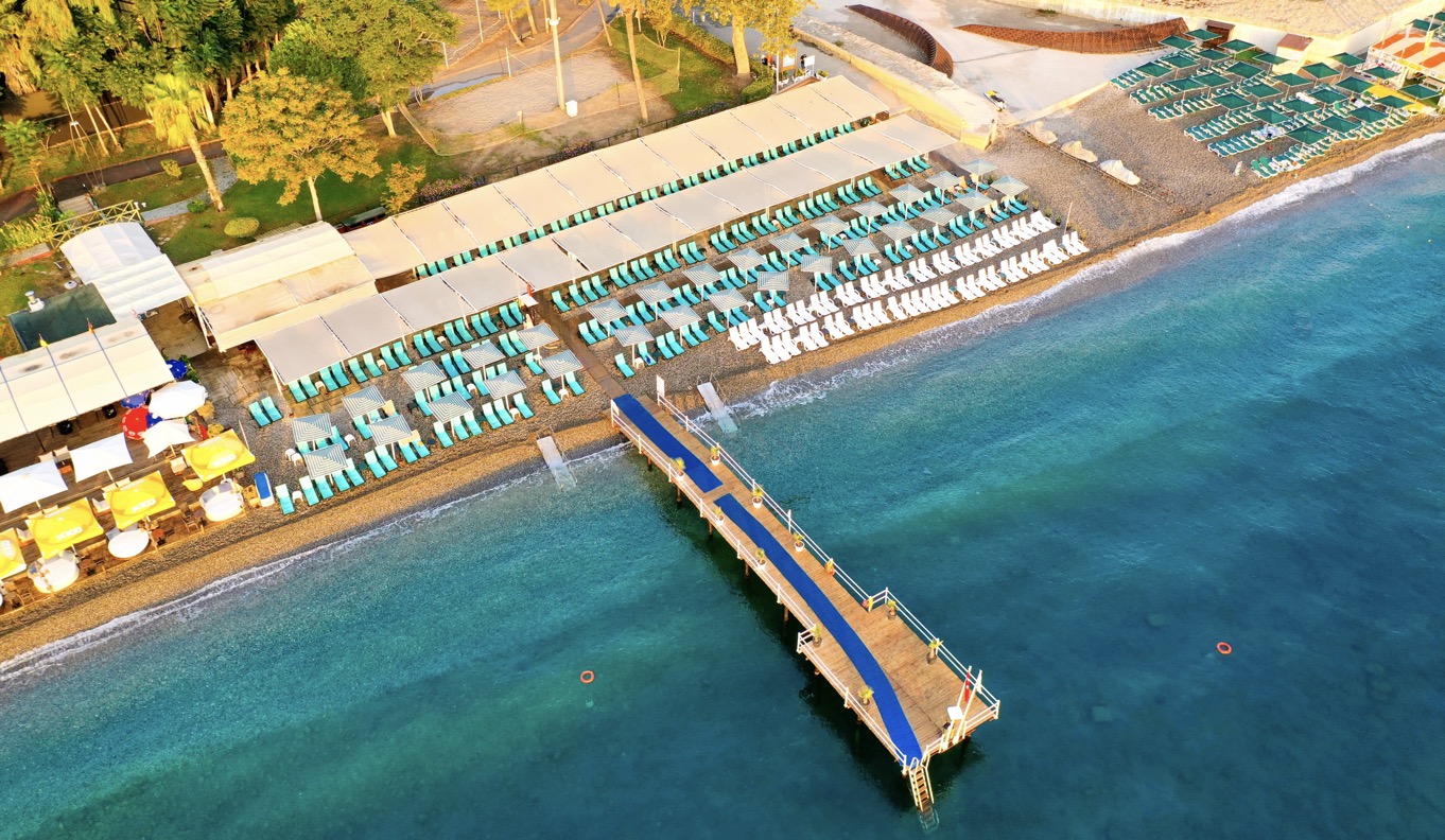 Собствен, чакълест плаж. Чадъри, шезлонги и матраци на плажа и при басейна – безплатно, плажни кърпи – срещу депозит.