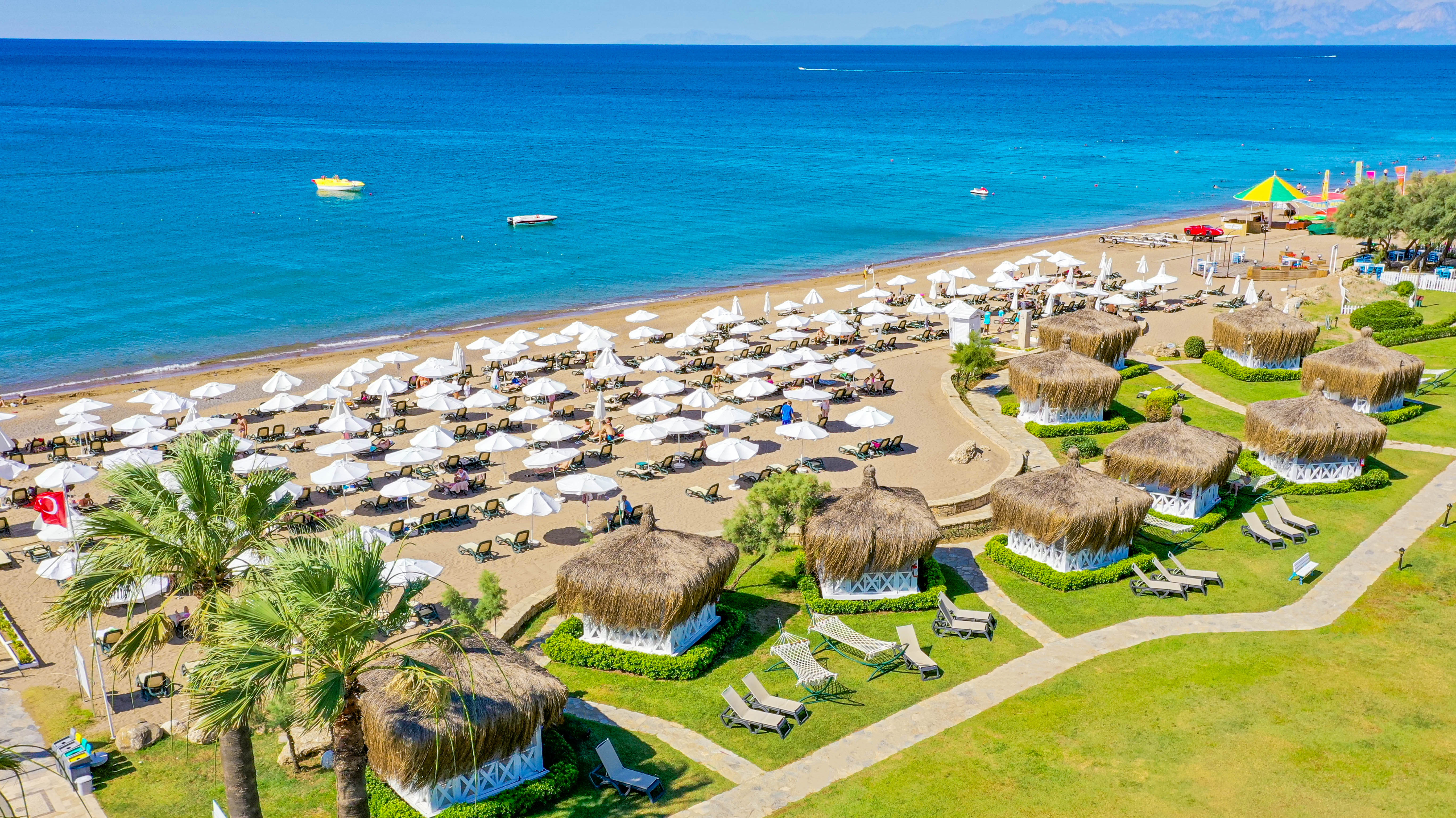 Собствен плаж, пясъчно-чакълест. Чадъри, шезлонги и плажни кърпи на плажа и при басейна – безплатно.