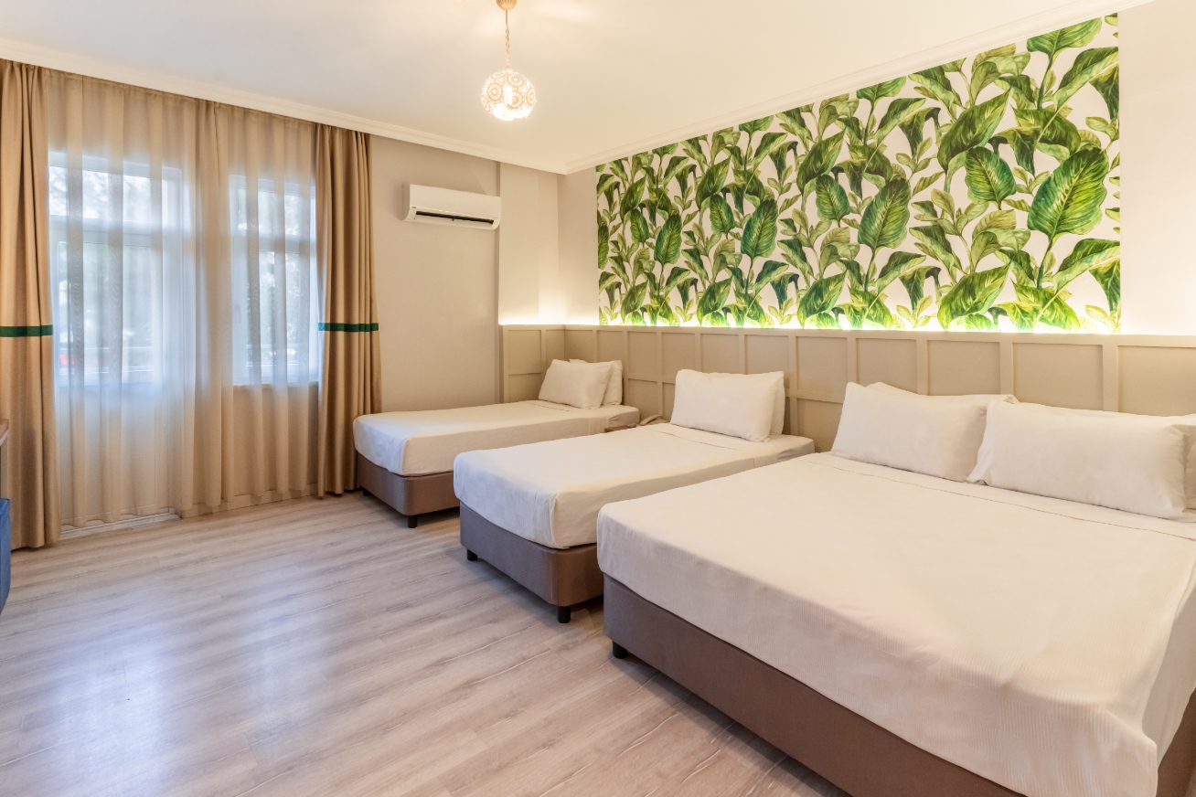 Хотелът разполага с общо 233 стаи, разположени в две 4-етажни сгради A и B блок, от които 65 Economy room (без балкон -16м2), 160 Comfort Standard room (18-25 м2), 8 Family room (35 м2).