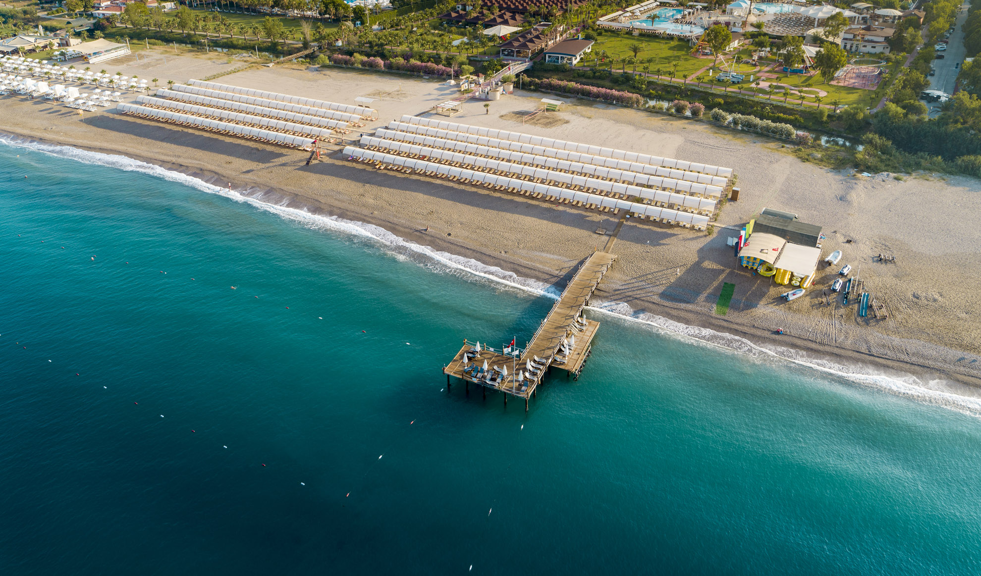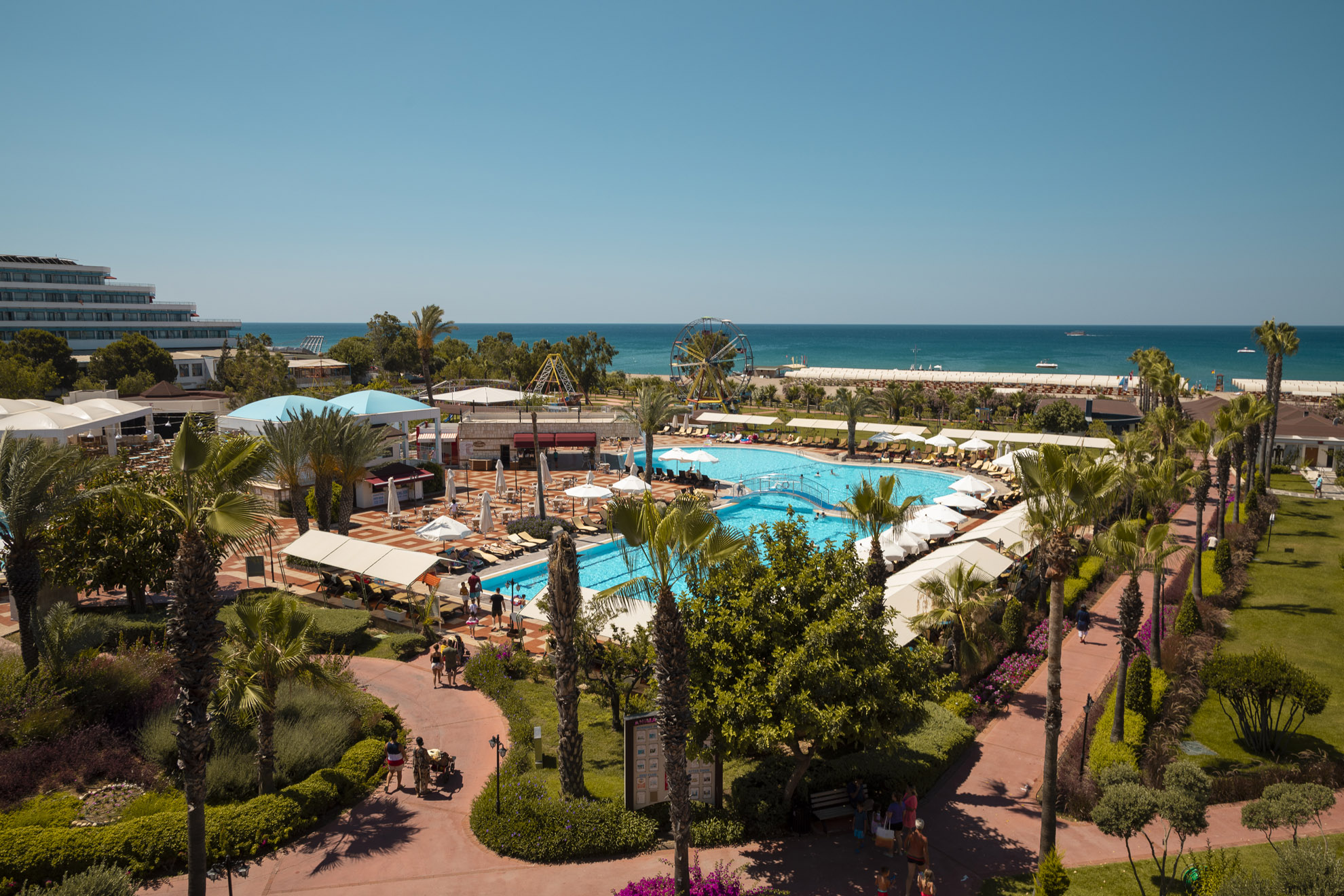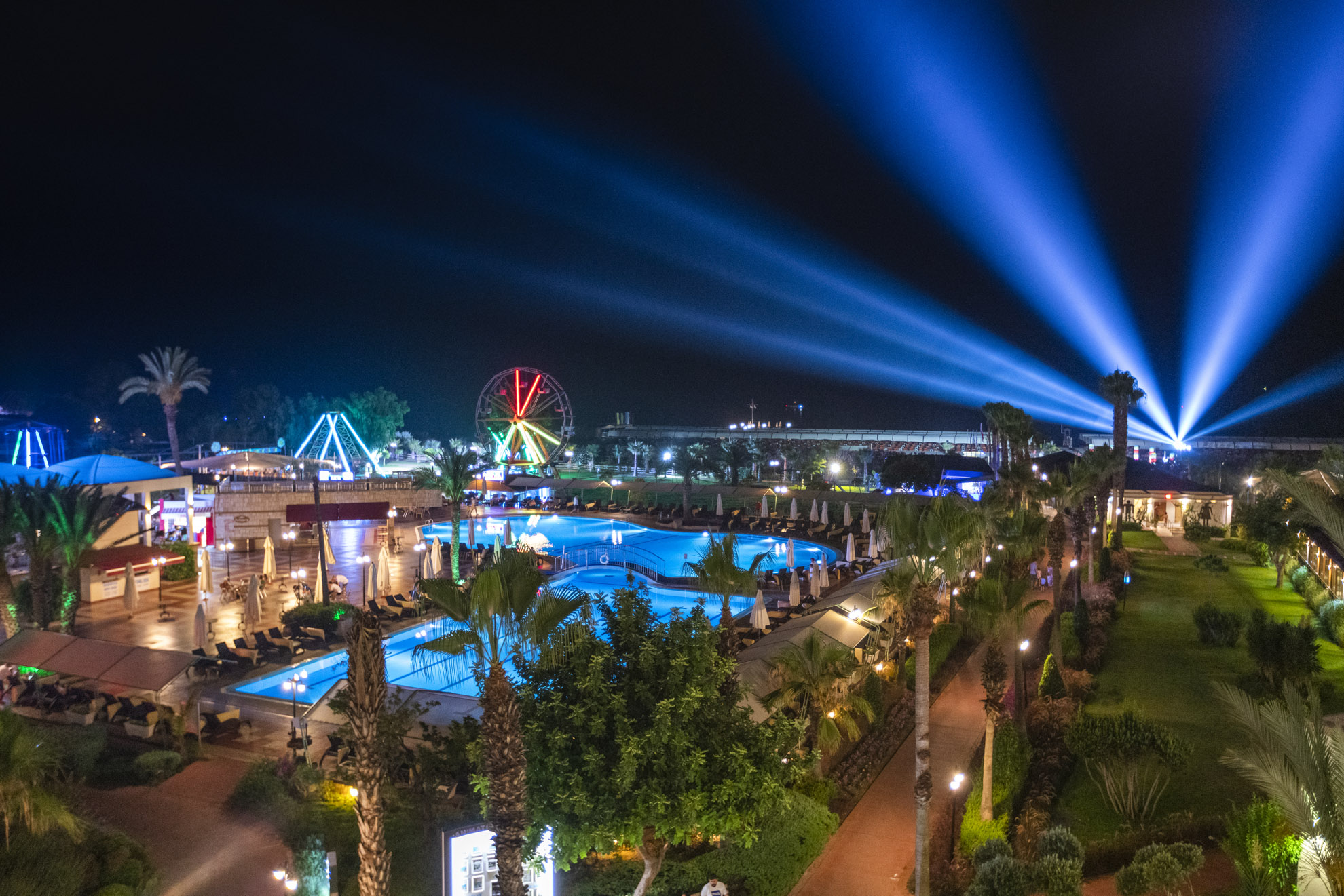 Основен ресторант, диетичен и вегетариански бюфет, 3 снек ресторанта, 3 а-ла-карт ресторанта (рибен, мексикански, китайски - с предварителна резервация и срещу доплащане), 8 бара, 3 открити и закрит басейн (отопляем през зимния сезон), дискотека, сладкарница, аквапарк с 14 водни пързалки (7 за възрастни и 7 за деца), лунапарк, мини зоопарк, СПА център, магазини, 3 конферентни зали, Wi-Fi.