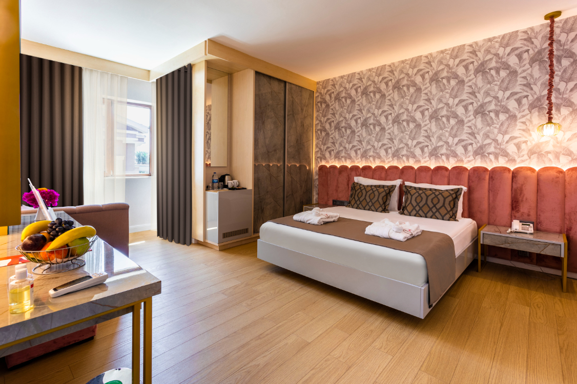Стаи в основна сграда Main Building: 84 стаи Standard room (29 м2); 47 стаи Duplex rooms (44 м2) двуетажен мезонет, на първия етаж има две единични легла, а на втория спалня, с обща баня и тоалетна и балкон.